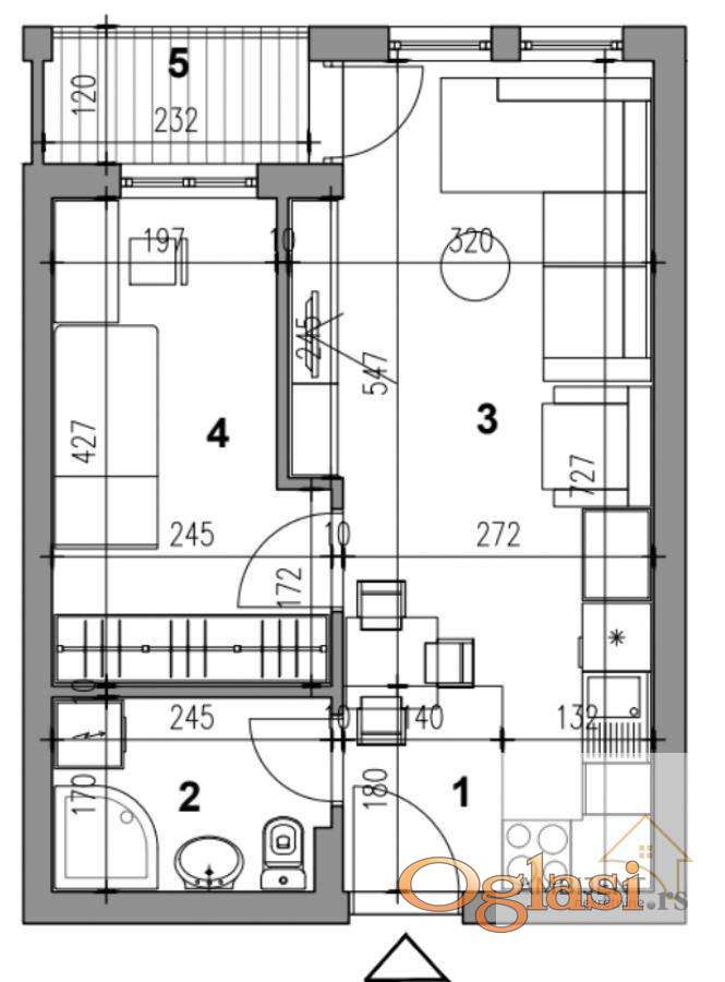 - Struktura stana: ulazni hodnik, prostrani dnevni boravak sa trpezarijom i kuhinjom, spavaća soba, kupatilo i lođa koja je sjajan kutak za odmor ili rad.
