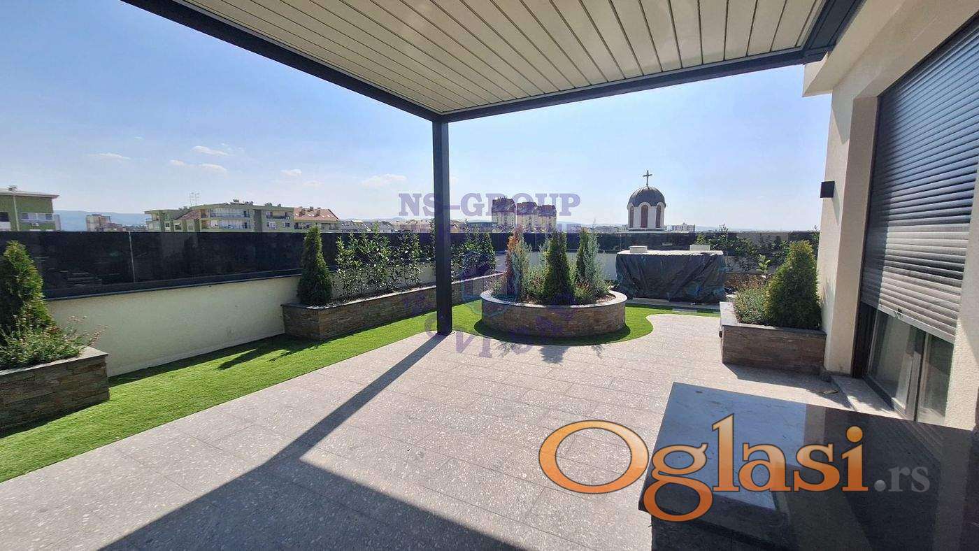 Vrhunski stan u novoj zgardi. Visoki kvalitet gradnje i opreme. Uknjiženo 133m2, a ukupna kvadratura stana sa terasom koja izlazi na krov zgrade sa kog se pruža pogled na ceo grad i Frušku goru. Uz stan se dobijaju tri garažna mesta. Za više informacija, pozovite.