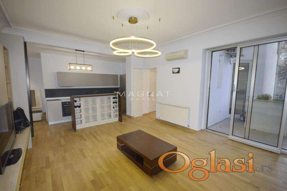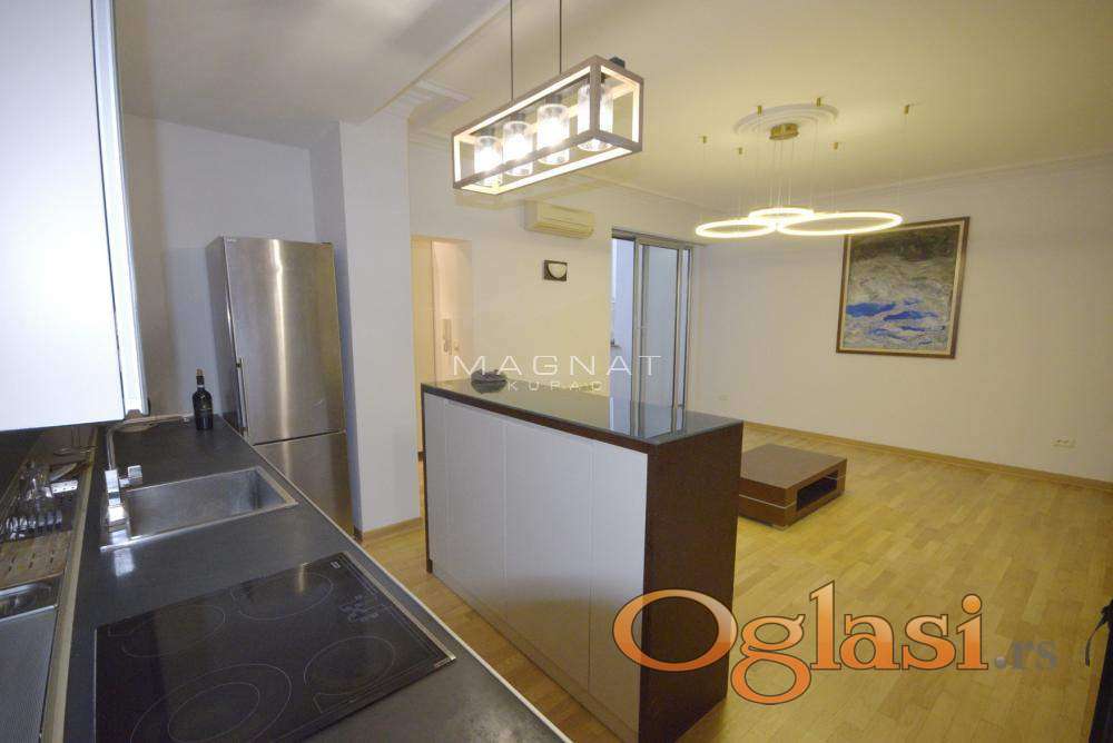 Vračar prodaja stana u neposrednoj blizini Krunske ulice. U zgradi sa urednim ulazom i liftom prodaja se četcorosoban stan. Uredna fasada zgrade. Stan je renoviran, dobro održavan. Kompletno je sredjen stan, luksuzno renoviran sa kvalitetnim materijalima. Uradjena je nova vodovodna i elektro instalacija. Postavljena nova rasveta. U spavaćim sobama i predsoblju su postavljeni ugradni plakari. Stan je salonski, kompletno renoviran Visina plafona 3m. Raskošan parket. Svetao, dvostran. Raspored je prostorija je vrlo funkcionalan i moderan. Od prostorija ima predsoblje, veliki dnevni boravak, kuhinju sa trpezarijom, tri spavaće sobe, dva kupatila i dve lođe. Dnevni boravk ima otvoreni deo ka trpezariji kuhinji što daje lepotu prostora. (openspace koncept ). Jedna spavaća soba ima svoje kupatilo( master spavaća soba ). Dnevna soba izlazi na terasu. Dve spavaće sobe takodje imaju izlaz na svoju terasu. U stanu je i kamin koji je funkciji. U dvorištu zgrade je parking mesto. Dvorište se zaključava, tako da mogu ući samo stanari zgrade. Mogućnost kupovine i garaže u blizini od 19m2. .Stanu pripada podrum. Idealan izbor za ljubitelje Vračara, raspored i lokacoija omogućavaju udoban porodični život. Stan je dobar izbor i za poslovni prostor zbog strukture i spartnosti i pozicije. A dobra je investicija i za iznajmljivanje. U blizini su tehnički fakulteti, Pravni fakultet, Bulevar sa velikim izborom radnji, banke, škola, obdanište, stanice gradskog prevoza i najlepša ulica u Beogradu Krunska. Uknjižen. 14... Oznaka na mapi pokazuje deo grada, ne i tačan položaj zgrade. Posrednička naknada 2%