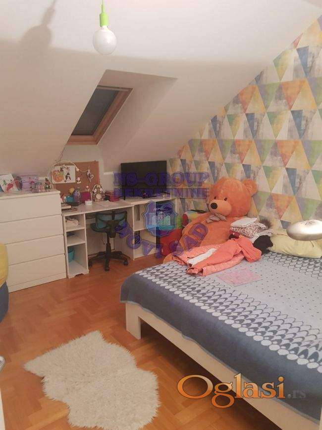 TOP LOKACIJA! Blizina škole, vrtića, pošte, marketa, pijace, tržnih centara. Odličan stan na dve etaže. Uknjižena nekretnina na vlasnika 1/1. Mogućnost kupovine putem stambenog kredita. Stan bez ikakvog ulaganja. Sigurnosna vrata, pvc stolarija, hrastov parket. Kuhinja i svi ugradni plakari ostaju u ceni. Dole dnevna soba sa kuhinjom, dve spavaće sobe, manje kupatilo, terasa. Gore dve spavaće sobe sa kupatilom. Mogućnost kupovine garažnog mesta u suterenu zgrade. VREDI VIDETI.