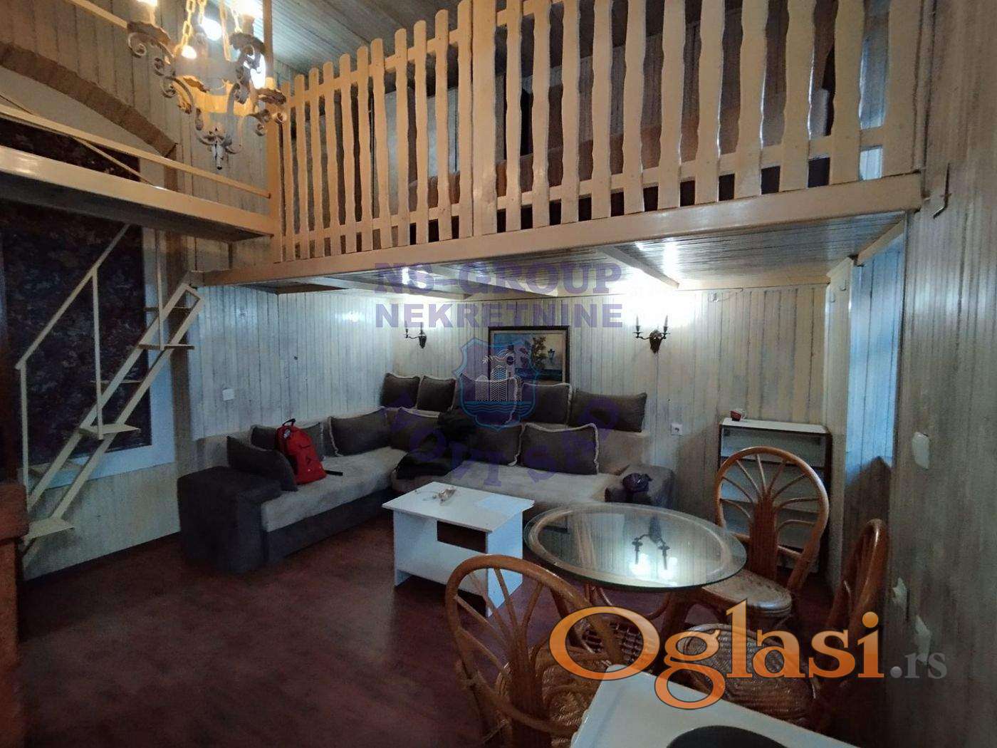 Simpatičan, jednoiposobni, dupleks u samom centru grada. Prestižna lokacija, stan kao sigurna investicija. Može donositi odličan prihod kao " stan na dan. " Naravno, možete živeti u njemu, ako volite najuži centar grada. Stan poseduje sve neophodno za udoban život. Na prvom nivou su dnevna soba, kuhinja i kupatilo. Na galeriji se nalazi spavaći deo, koji se sastoji iz dve celine, povezane mostićem. Prodaje se kompletno namešten, sa tehnikom.