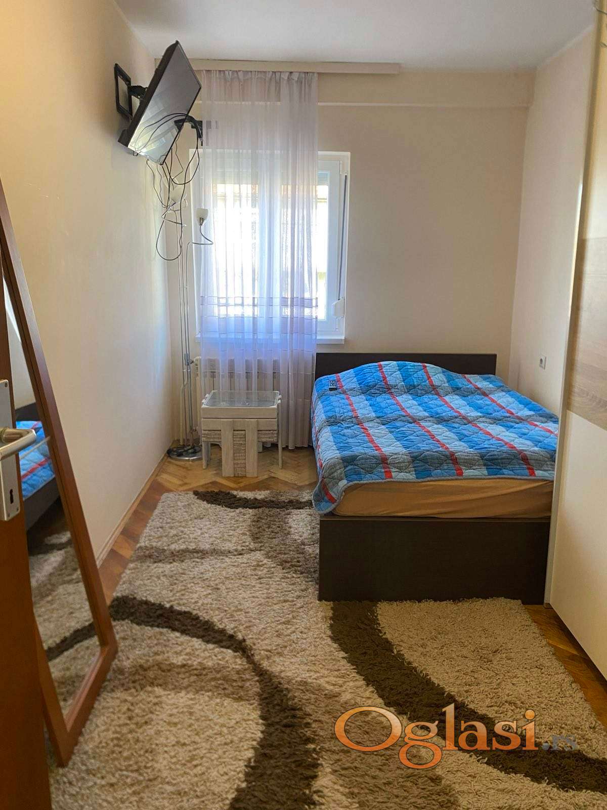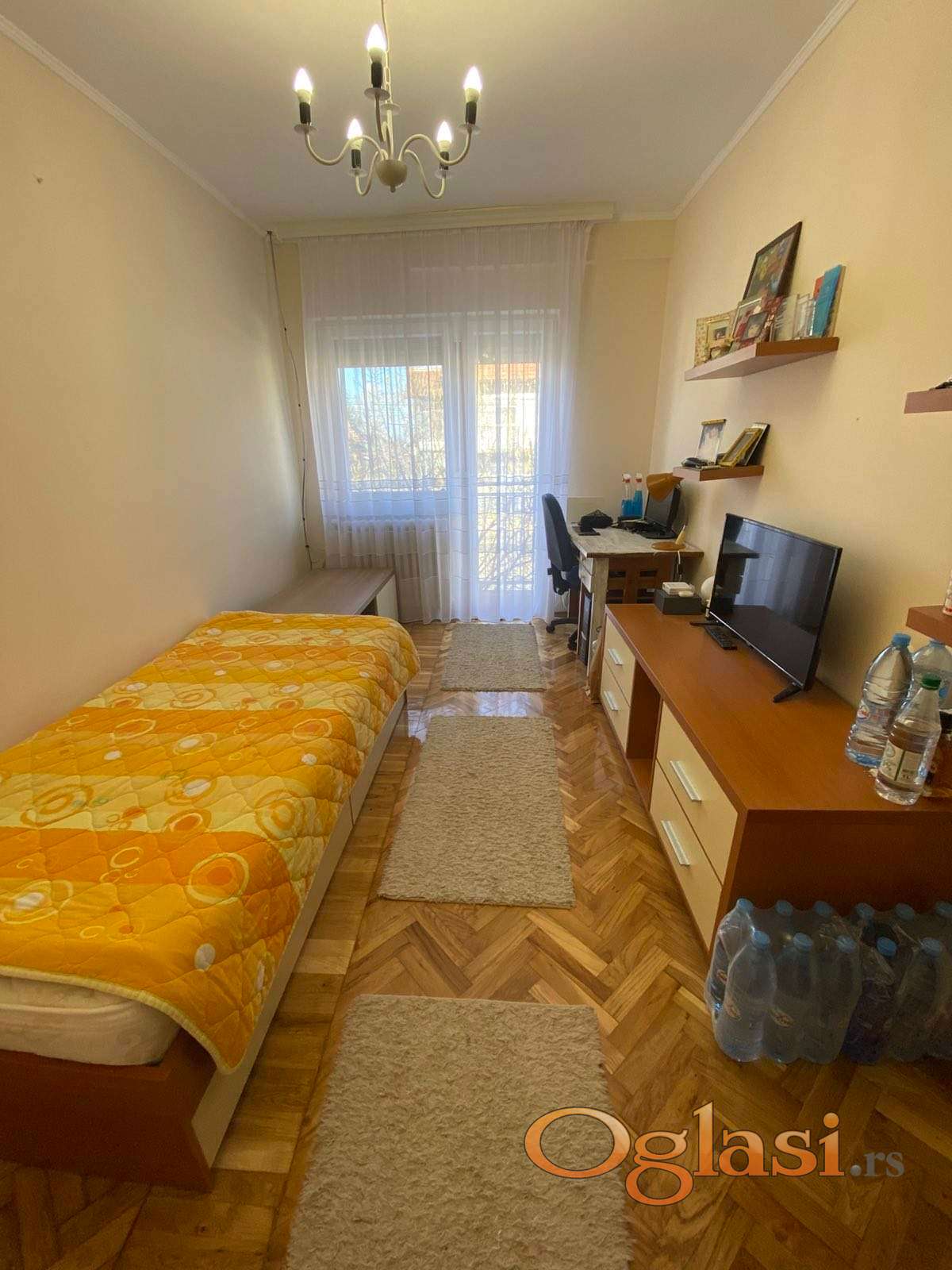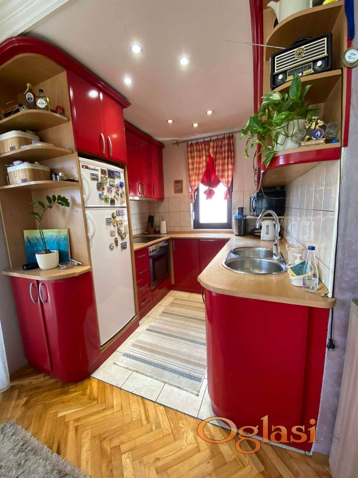 U stan se ulazi kroz veliki hodnik koji vodi do tri spavace sobe, kupatila, dnevnog boravaka sa trpezarijom i kuhinjom. Sav namestaj je ocuvan i nov, kao i parketi i stolarija.