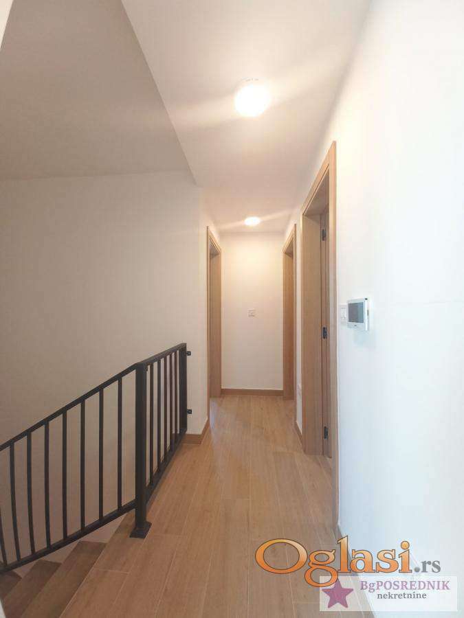 Novi Sad, Petrovaradin, Mišeluk 4, 205m2 ................................................................................................... 205m2, 6.9, PR/1, podno, terasa, garaža, parking, interfon, telefon, nov, uknjižen. Odličan porodičan stan, duplex, PR+1, novogradnja gde je spojen luksuz i kvalitet za konforan porodični život u zatvorenom kompleksu naselja koje je zajedničko vlasništvo vlasnika stanova, kuća u nizu. Veoma prostranog rasporeda: -prvi nivo PR: sastoji se od ulaznog hodnika, prostranog dnevnog boravka sa trpezarijom i kuhinjom, kupatilo sa toaletom, spavaće sobe, garaže i dvorišta od 35m2 sa formiranom terasom sa tendom i zelenom površinom, ograđeno. -drugi nivo, 1 sprat: sastoji se od četiri spavaće sobe i dva kupatila. Ispred stana je parking mesto. Grejanje je podno, toplotne pupme, grejanje+hlađenje, stanovi su opremljeni najkvalitetnijim materijalima i opremom. Uknjižen na 176m2 korisne površine, dvorište od 52m2 (oko 40m2 iza stana i oko 10m2 ispred stana) ograđeno i zaštićeno od pogleda, što čini 205m2 za život. Cena je bez PDV-a. BG POSREDNIK NEKRETNINE DOO BEOGRAD Agent kontakt telefon: 0601517115 Posrednička provizija se naplaćuje u skladu sa Opštim uslovima poslovanja i cenovnikom