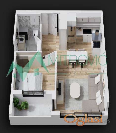 Novo u ponudi!!! Funkcionalan, dvosoban stan na I spratu moderne stambene zgrade, sa dnevnim boravkom sa kuhinjom i trpezarijom, odvojenom spavaćom sobom, kupatilom i terasom.