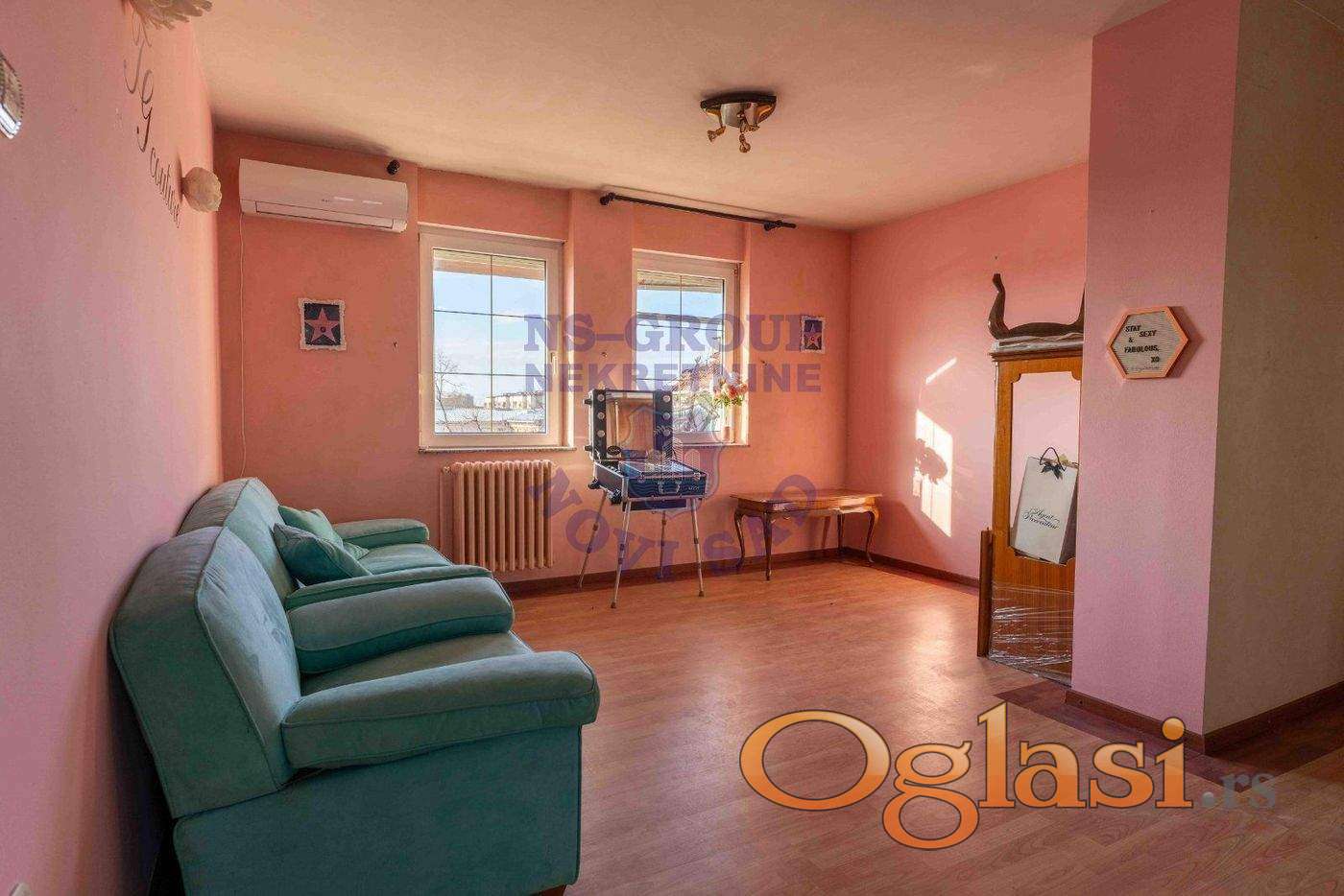 Prostoran i svetao porodičan stan od 200m2 u prirodi, prostire se na dva nivoa i dvostrano je orijentisan, tako da sa jedne strane gleda ka Petrovaradinskoj tvrđavi, a sa druge ka Katoličkoj porti. Nalazi se u neposrednoj blizini Dunavskog parka i Riblje pijace, na svega minut hoda. Zgrada u kojoj se nalazi poseduje lift, a sam stan pruža osećaj kao da živite u kući. Po strukturi je petosoban što ga čini idealnim za porodičan život. Prvi nivo se sastoji od master spavaće sobe sa master kupatilom, gostinskog toaleta, trpezarije, dnevne sobe, salona, kuhinje i dve zastakljene terase. Na spratu se nalazi jos jedna mala dnevna soba, prostorija za pranje veša sa toaletom, 3 spavaće sobe i dečije kupatilo. Za više informacija pozovite!