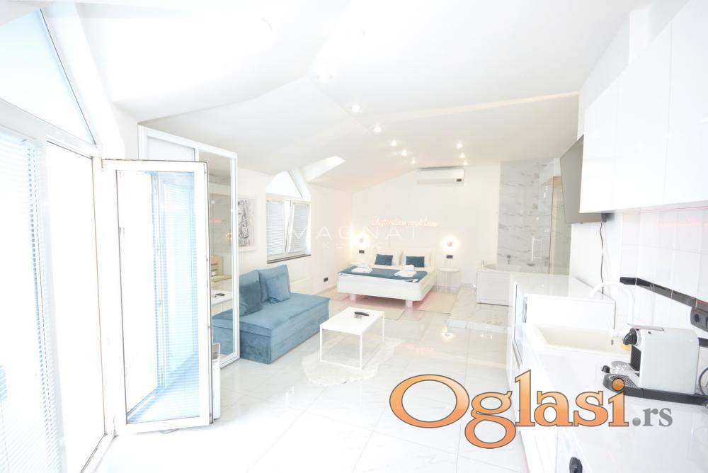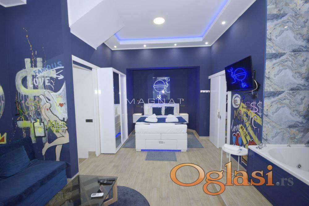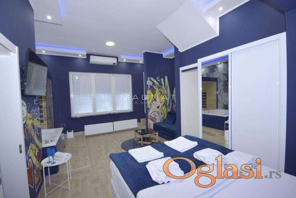 Sastoji se od 3 ekskluzivna stana sa razradjenim biznis modelom "stan na dan".Dvostrano orjentisan i prostire se sa terasama na ukupno 155 kvadrata povrsine.Vlasnik je ostavio svoj licni pecat pazljivo birajuci i uklapajuci najkvalitetnije materijale u opremanju.Svaki poseduje welnes (djakuzi i saunu)