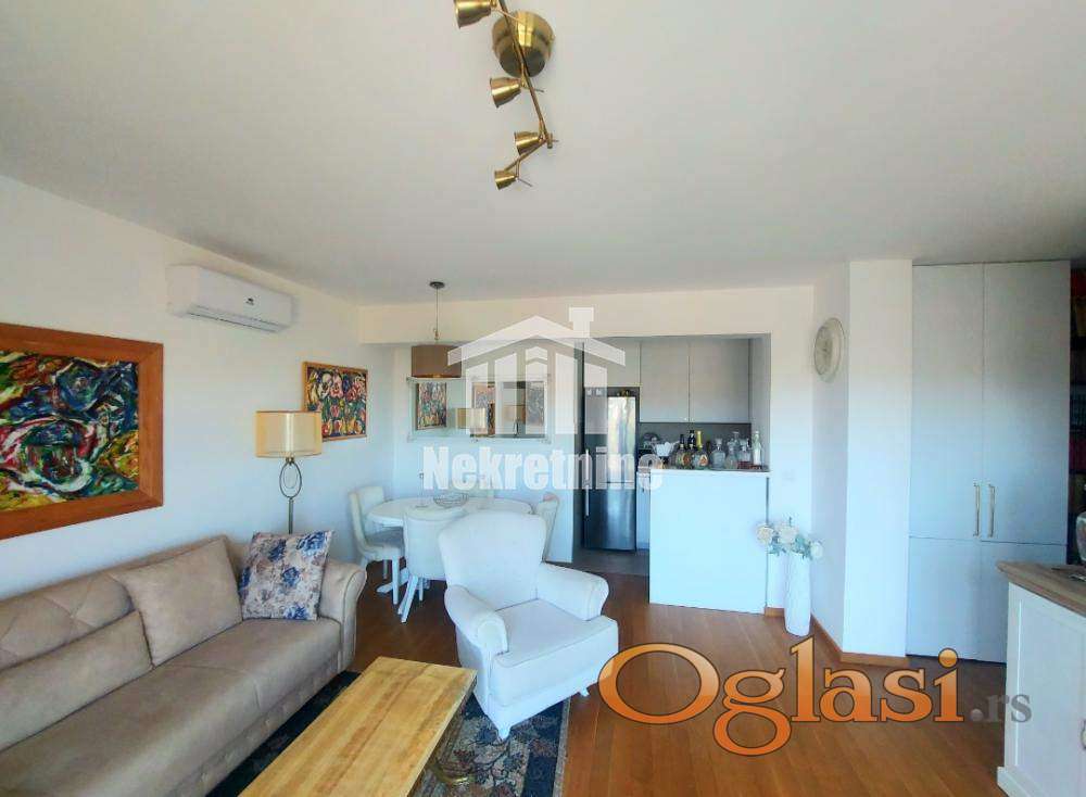 Odličan 2.5 stan grejne površine 64 m2 u novoj zgradi iz 2022. godine. Prostorije: Dnevni boravak, kuhinja sa trpezarijom, 2 spavaće sobe, kupatilo. Mogućnost kupovine klackalice 12.000 eura, ili garažnog mesta po ceni od 15.000 eura. Stan se prodaje polunamešten (ugradni plakari, kuhinja). Po dogovoru može i namešten. Vrtić, škola, prodavnice, sve u blizini. Odlična povezanost sa gradom linije 25,26,17. Za svaku preporuku. Posrednička naknada u skladu sa opštim uslovima poslovanja. 2%