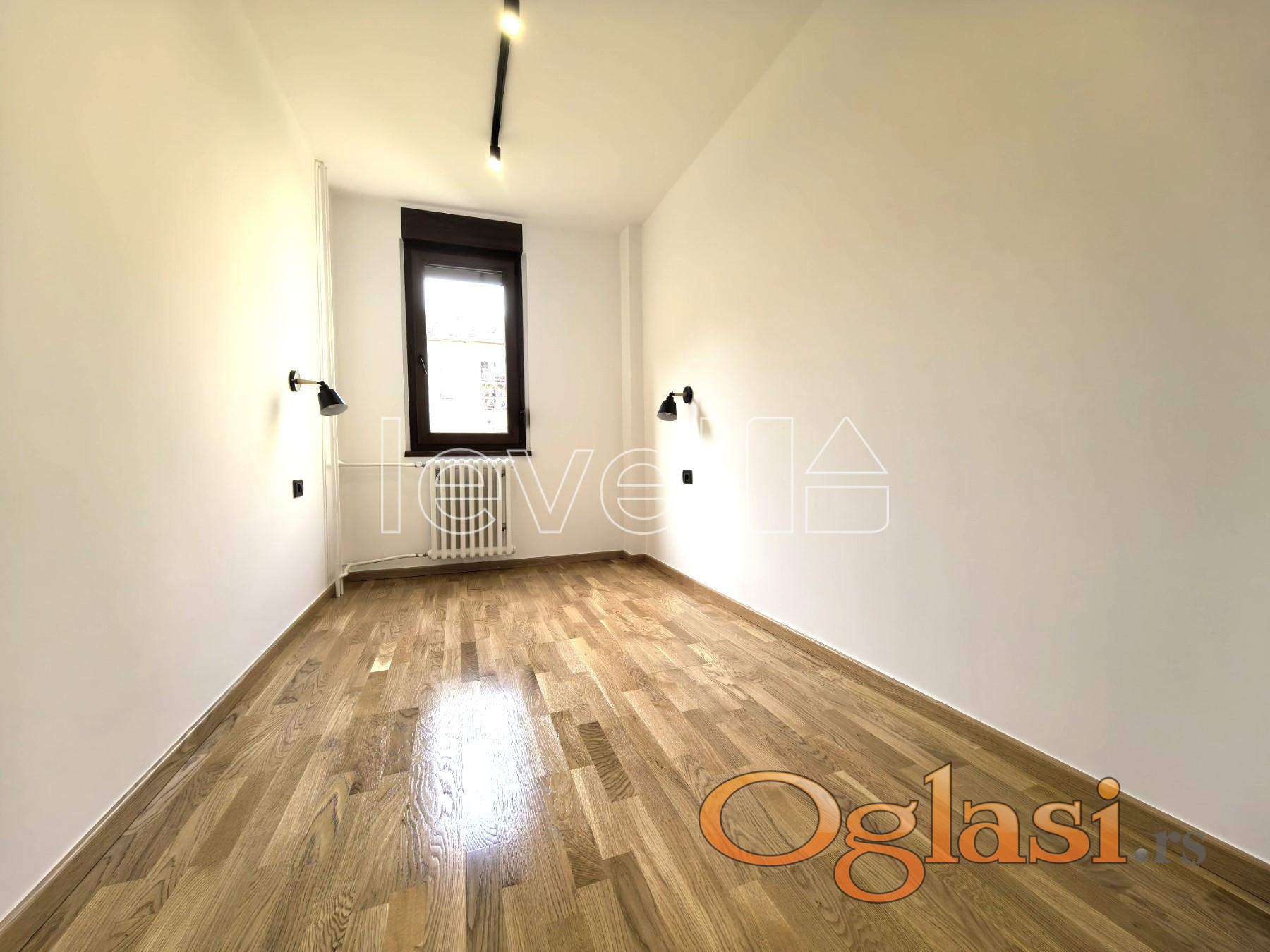 LEVEL PROPERTY, agencija za nekretnine Vam predstavlja odličan, manji dvoiposoban stan u kvalitetenoj zgradi na Šanengradu. Smešten na visokom prizemlju, okrenut na mirno dvorište. Stan je komplet kvalitetno renoviran. Kuhinja sa trpezarijom i dnevnim boravkom, 2 spavaće sobe, kupatilo, terasa sa ostavom. Ostava na tavanu. Pomenjena kompletno vodovodna i kanalizaciona mreža, struja, spaljna i unutrašnja stolarija. pločice velikog formata 120x60.
