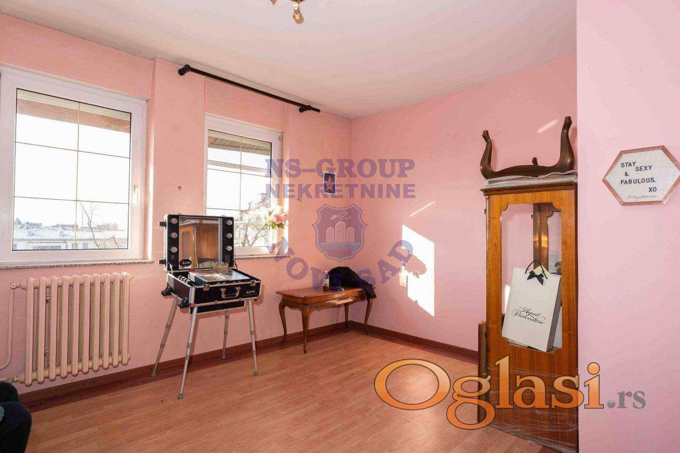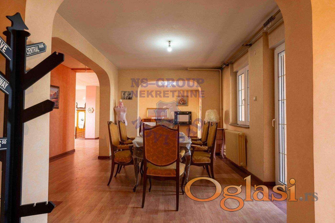 Prostoran i svetao porodičan stan od 200m2 u prirodi, prostire se na dva nivoa i dvostrano je orijentisan, tako da sa jedne strane gleda ka Petrovaradinskoj tvrđavi, a sa druge ka Katoličkoj porti. Nalazi se u neposrednoj blizini Dunavskog parka i Riblje pijace, na svega minut hoda. Zgrada u kojoj se nalazi poseduje lift, a sam stan pruža osećaj kao da živite u kući. Po strukturi je petosoban što ga čini idealnim za porodičan život. Prvi nivo se sastoji od master spavaće sobe sa master kupatilom, gostinskog toaleta, trpezarije, dnevne sobe, salona, kuhinje i dve zastakljene terase. Na spratu se nalazi jos jedna mala dnevna soba, prostorija za pranje veša sa toaletom, 3 spavaće sobe i dečije kupatilo. Za više informacija pozovite!