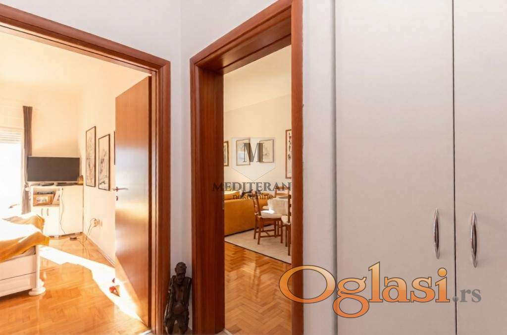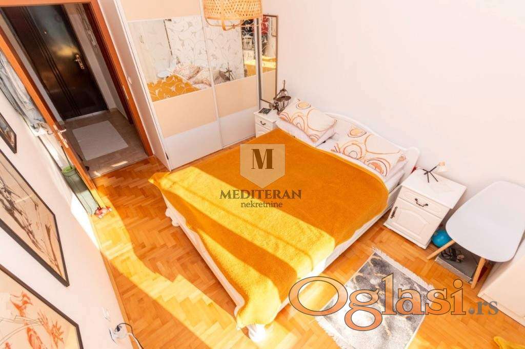 Stan funkcionalnog rasporeda,smješten u kvalitetnoj zgradi novije gradnje,kompletno južno orjentisan i osunčan tokom cijelog dana.Ima Izlaz na veliku terasu iz dnevnog boravka i spavaće sobe.