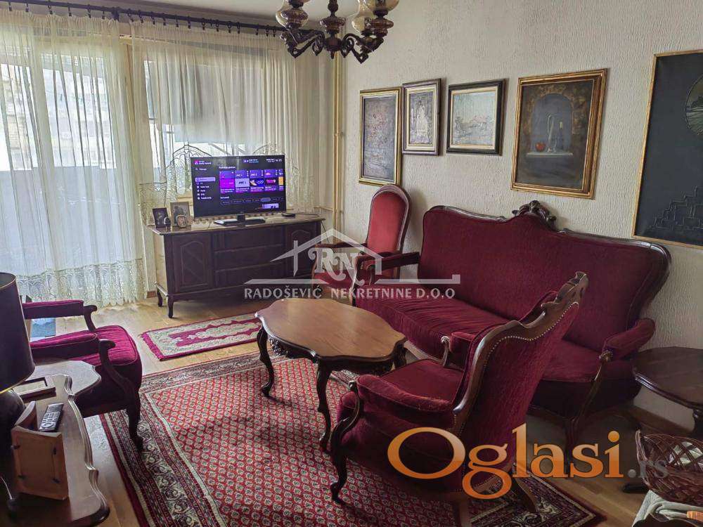 Odličan 3.0 (trosoban) stan, na odličnoj lokaciji, odmah iza IMO-centra. STan ima grejne površine 75m2+9m2 lođa koja je zatvorena. Stan se sastoji od velike dnevne sobe, dve spavaće sobe, odvojene kuhinje i odvojene trpezarije. Ima dva mokra čvora, kupatilo i gostinjski wc, u hodniku ima mesta za ugradne plakare.