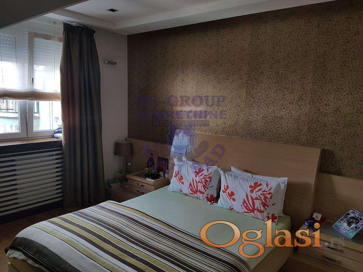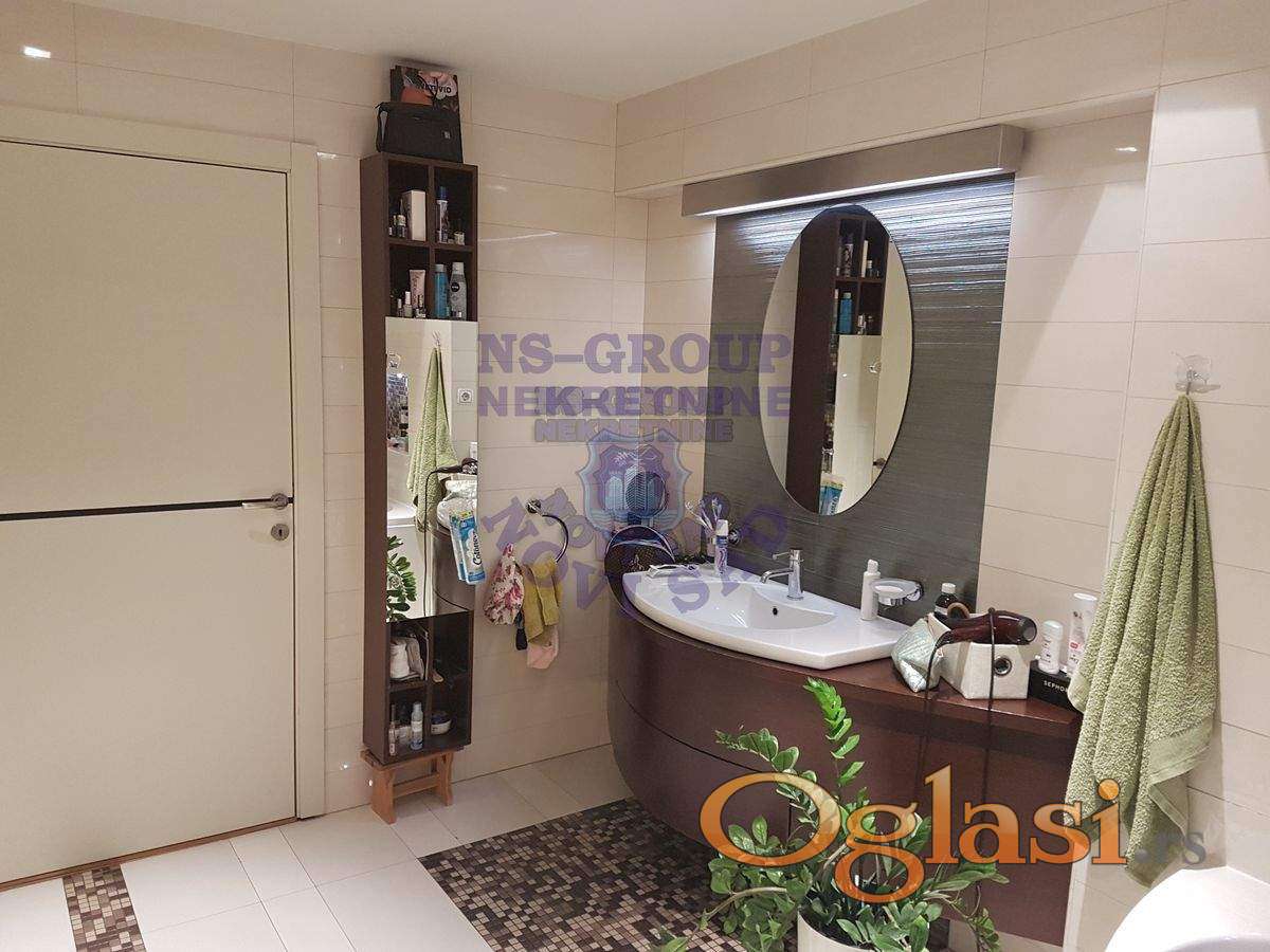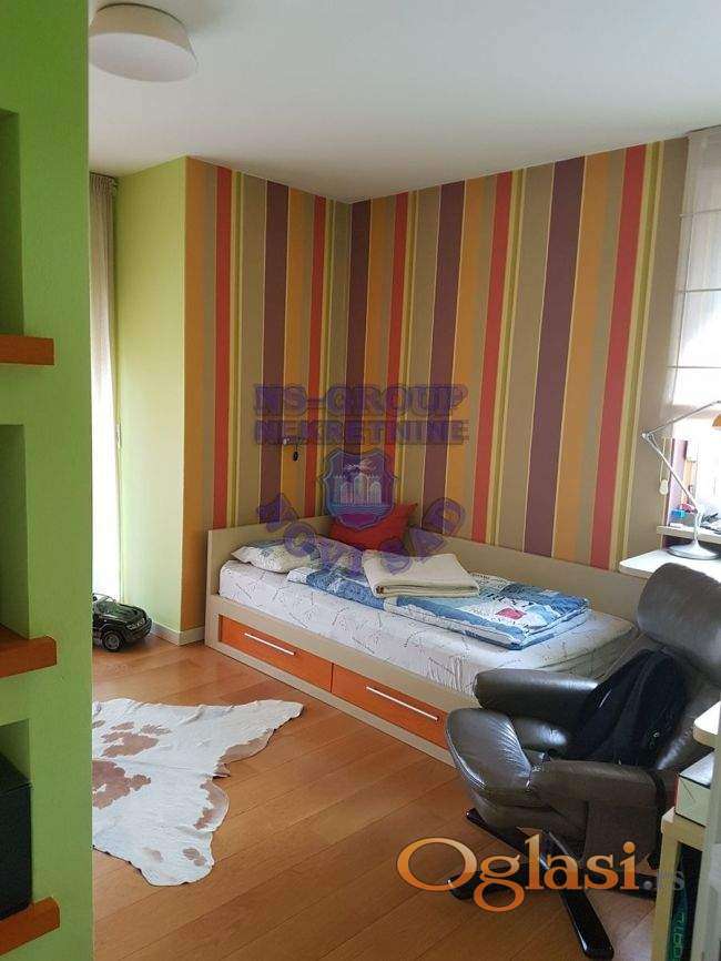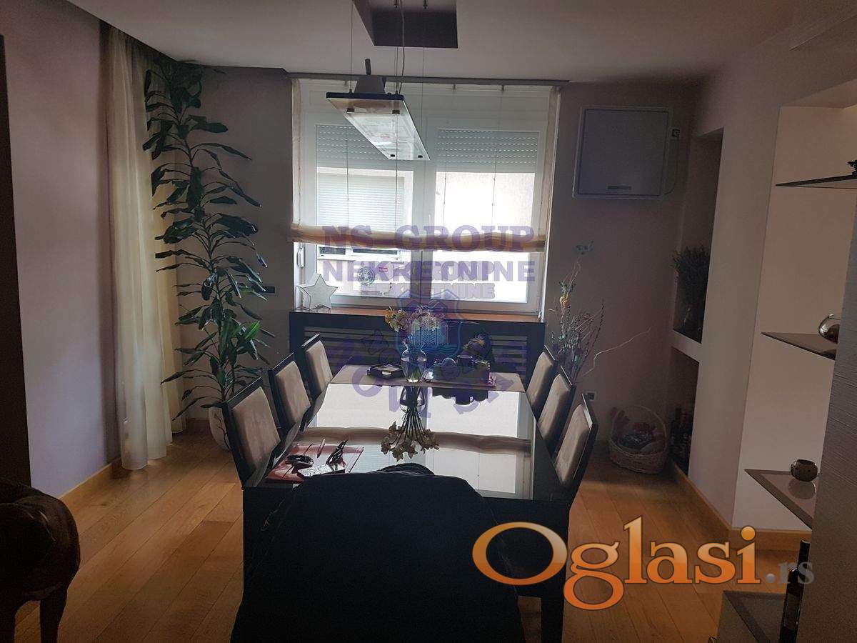 Prelep 4,0 stan, koji su sadašnji vlasnici uzeli u sirovom stanju-sve je namenski odrađeno !! Odlična keramika, kamin u dn.boravku. Zauzima skoro 1/2 cele etaže, u ceni ostaje kompletan i izuzetan nameštaj sa svom tehnikom, plakari, jakuzzi u velikom kupatilu. U dvorištu prizemne garaže sa rolo vratima, koje se posebno prodaju, ali nije uslov !!