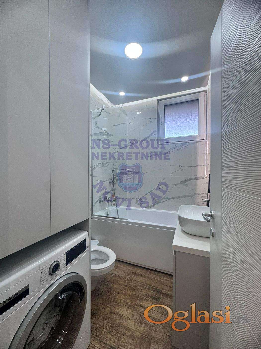 Odlična nekretnina, u mirnoj ulici, uvučena sa Bulevara. Stan se nalazi u novoj zgradi, u ulazu sa svega tri stana. Visina prvog sprata. Odlična, LUX oprema stana i prodaje se sa svim stvarima i tehnikom. Podno grejanje, sigurnosna ulazna vrata, odlična keramika, dva morka čvora. Uknjižen 1/1 . Naša topla preporuka!!!!
