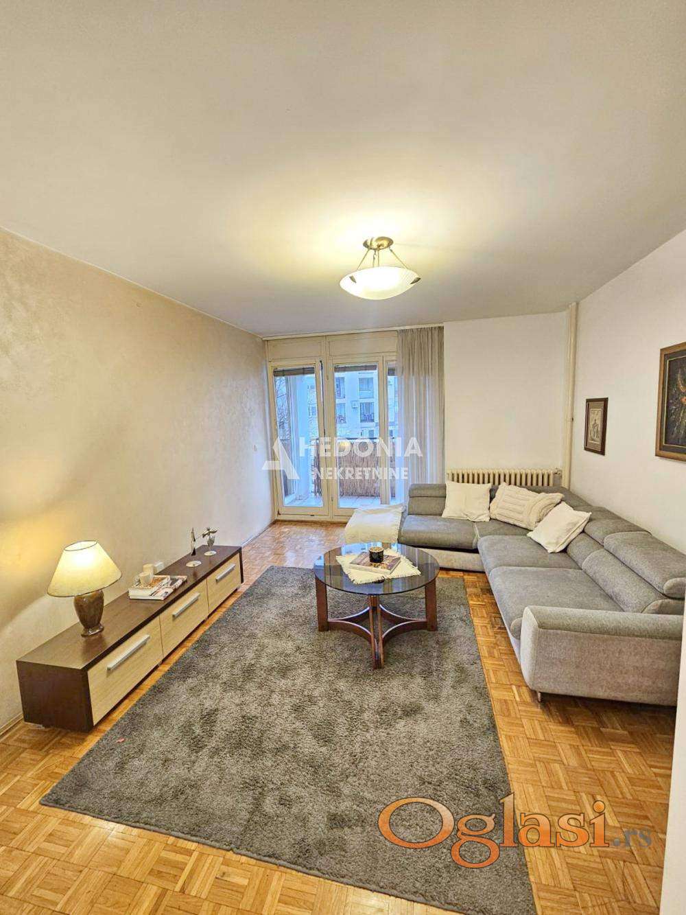 U neposrednoj blizini Ade Ciganlije, u parkovskom okruženju ulice, nalazi se ovaj troiposoban stan. Smešten je na prvom spratu u urednoj i održavanoj zgradi sa liftom. Infrastruktura je kompletna, u blizini su vrtić, osnovna i srednja škola, Dom zdravlja kao i svi ostali neophodni sadržaji za udobno stanovanje. U prilog lokaciji svakako doprinosi blizina "beogradskog mora" - Ade Ciganlije, najposećenijeg ekološkog dela grada sa kupalištem i bogatim ugostiteljskim i zabavnim sadržajima. Stan je trostrano orijentisan i sastoji se od: ulaznog hodnika, dnevnog boravka, kuhinje, trpezarije, tri spavaće sobe, koje su odvojene hodnikom, toaleta, kupatila, ostave i tri terase.