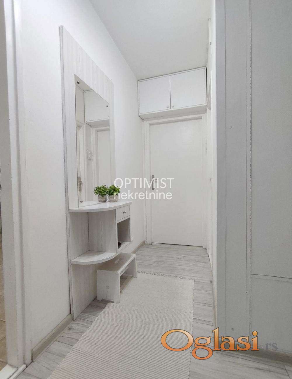 Optimist nekretnine Vam nude odličan dvosoban stan, idealnog rasporeda prostorija, dvostrano orijentisan i izuzetno svetao, na drugom od ukupno šest spratova uredne i odlično održavane zgrade sa liftom, u mirnoj ulici Darinke Radović u Novom Železniku.