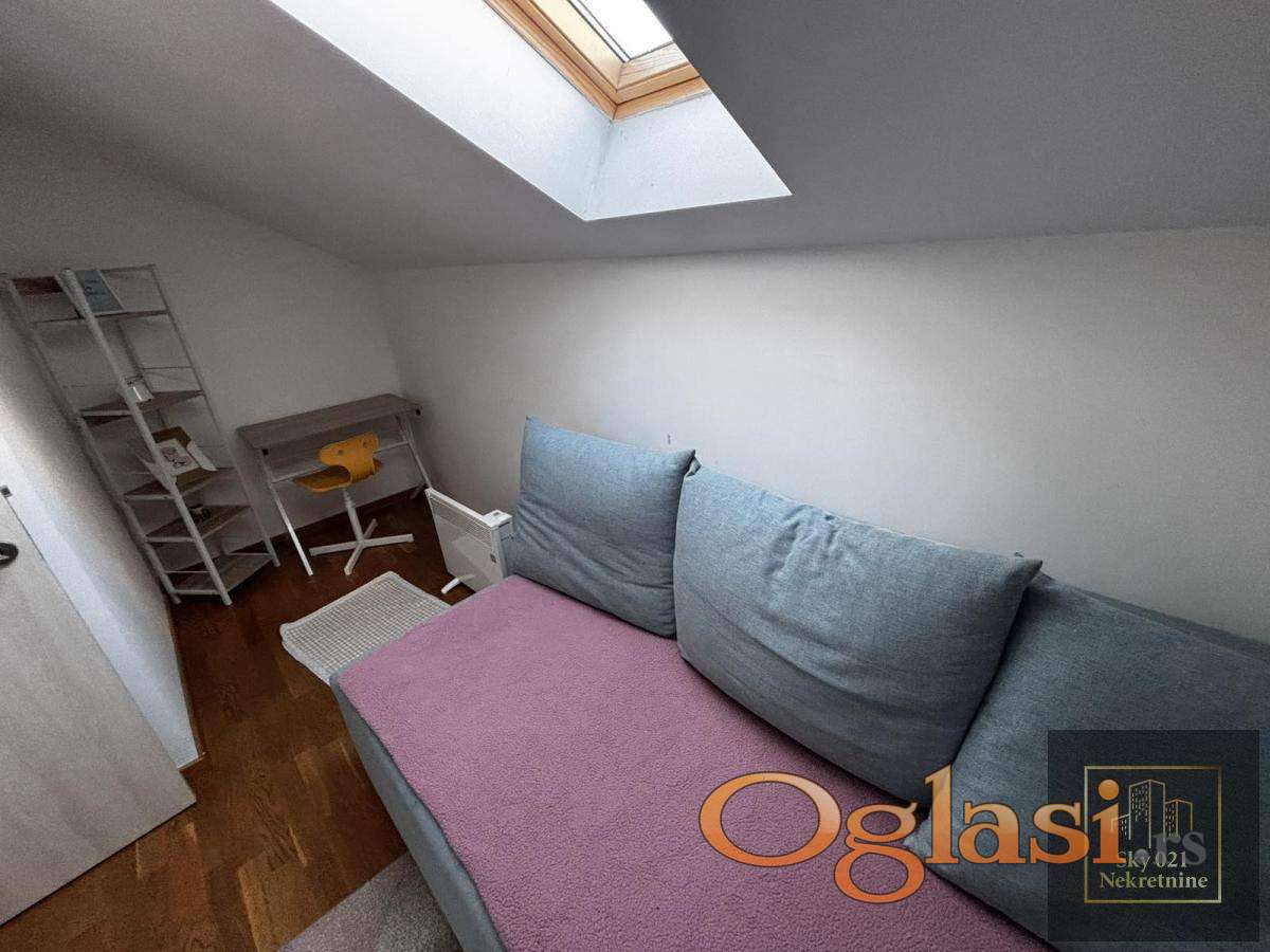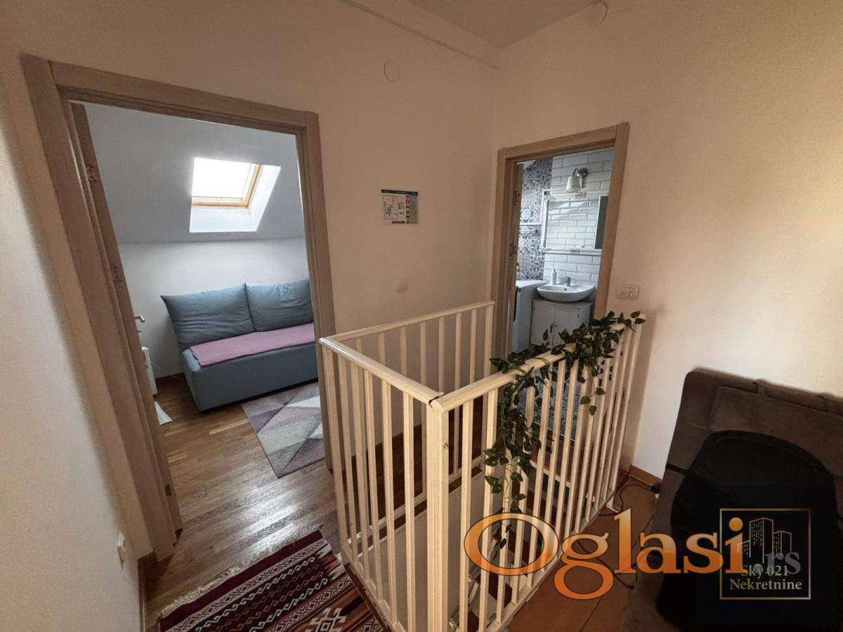 Prodaje se dvoiposoban duplex površine 45 m² na petom spratu na Grbavici! Stan je funkcionalno organizovan na dva nivoa: - Na donjem nivou se nalazi svetao dnevni boravak sa kuhinjom, trpezarijom i izlazom na terasu. - Gornji nivo: dve spavaće sobe i moderno kupatilo opremljeno đakuzi kadom. Raspored je maksimalno iskorišćen i prilagođen savremenom načinu života. Posebnu vrednost ovoj nekretnini daje sauna, što predstavlja retkost u stanovima ove kvadrature! Stan se prodaje kompletno namešten, bez potrebe za dodatnim ulaganjima. Lokacija je izuzetno tražena, u neposrednoj blizini nalaze se škole, vrtići, prodavnice, pijaca, kao i sav sadržaj neophodan za svakodnevni život. Nekretnina se trenutno izdaje kao stan na dan i tokom većeg dela meseca je iznajmljena, što je čini izuzetno atraktivnom investicionom prilikom. Grejanje je na norveške radijatore, što obezbeđuje nisku potrošnju i stabilnu, prijatnu temperaturu tokom celog zimskog perioda. Stan je pogodan kako za rešavanje stambenog pitanja, tako i kao investicija za izdavanje. Nekretnina je uknjižena 1/1 i moguća je kupovina putem stambenog kredita. U cenu je uračunata agencijska provizija. Za više informacija, pozovite! REG. BR. Posrednika : 1594 Sky 021 Nekretnine 060/6-500-300 061/146-8-196          ID:1209