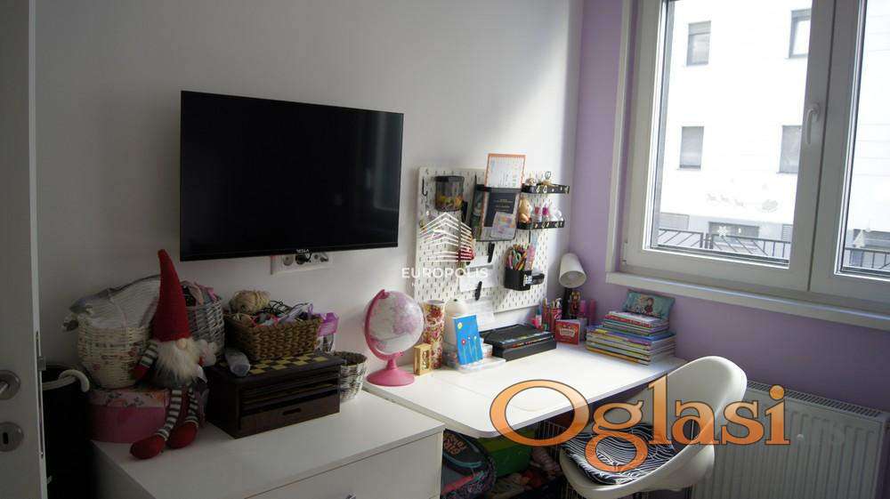 Stan se nalazi u prizemlju i odlikuje ga vrhunska gradnja: kamena vuna, troslojna stakla i aluminijumska stolarija garantuju odličnu termo i zvučnu izolaciju. Energetski razred B obezbeđuje značajne uštede, dok samostalni kondenzacioni kotao na gas omogućava potpunu kontrolu nad grejanjem i toplom vodom – što znači niski mesečni troškovi tokom cele godine.