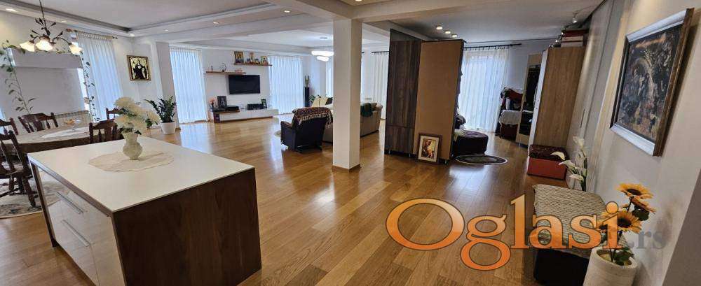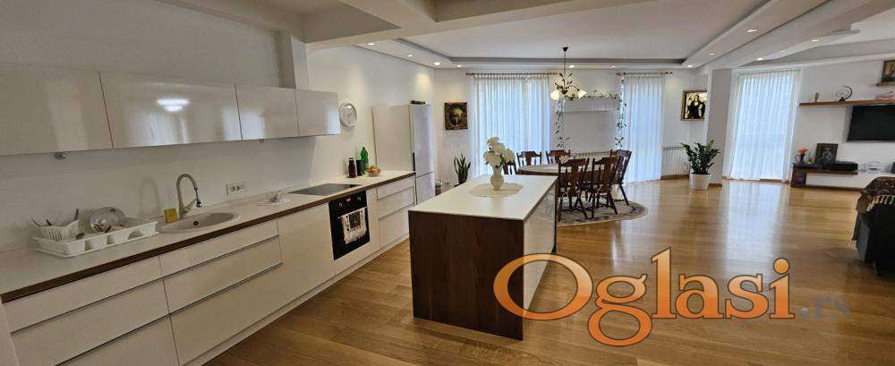 Premium enterijer i oprema: Unutrašnjost stana opremljena je najkvalitetnijim materijalima. Podovi su prekriveni parketom "S" klase koji daje osećaj topline i elegancije. Kupatio je opremljeno italijanskom sanitarijom i španskom keramikom, koji dodatno doprinose luksuzu i estetici prostora.