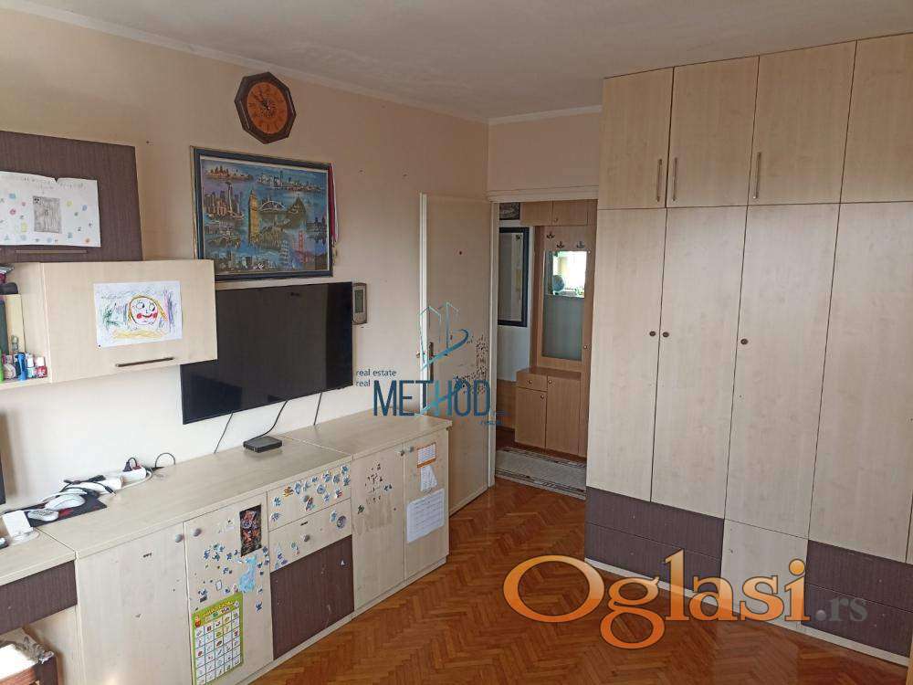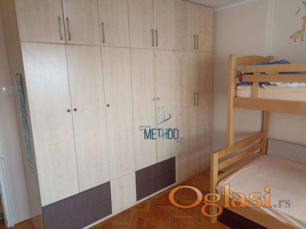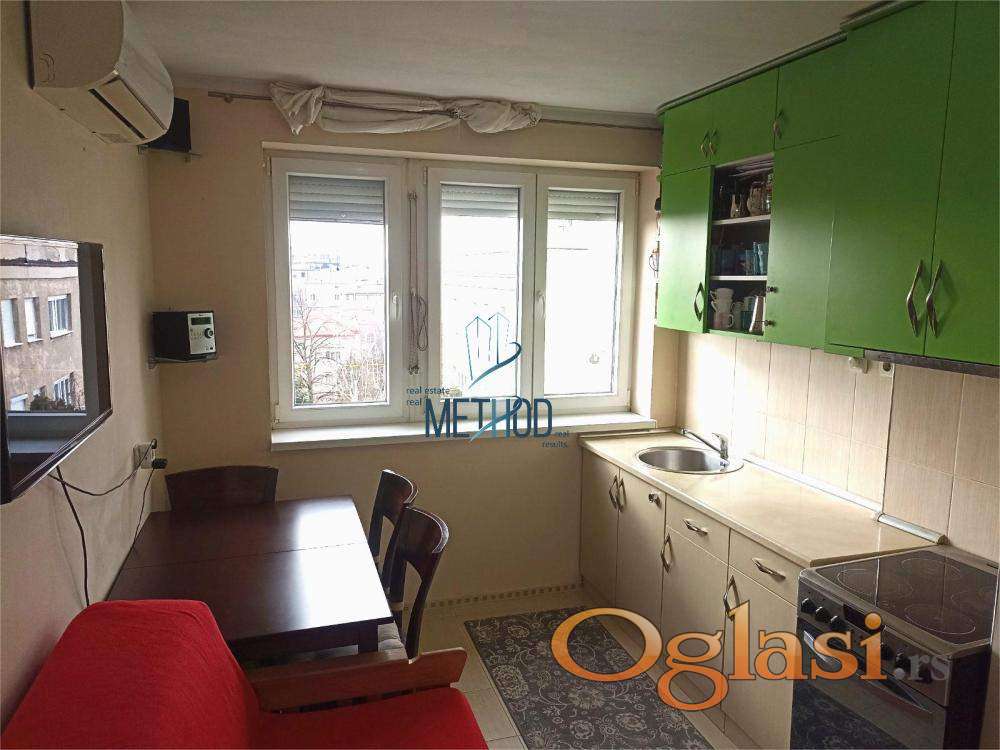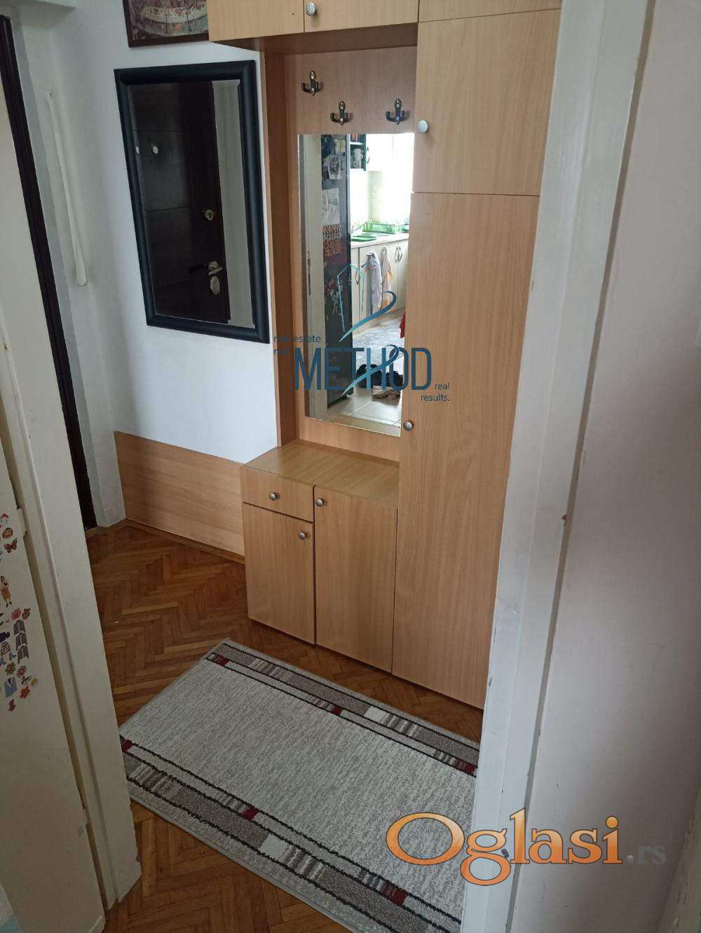 Raspored prostorija je sledeći: ulazni hodnik u kome je veliki plakar, kuhinja, soba i kupatilo. Lako adaptibilan u dvosoban.