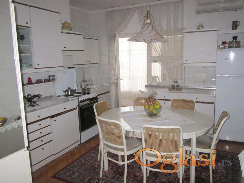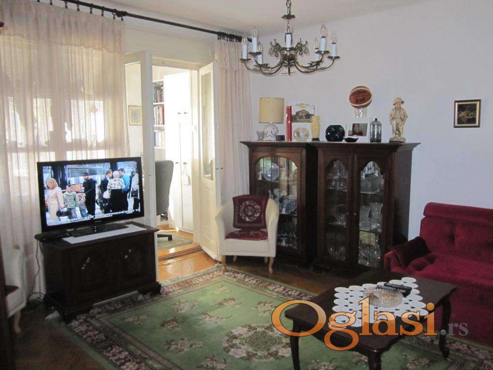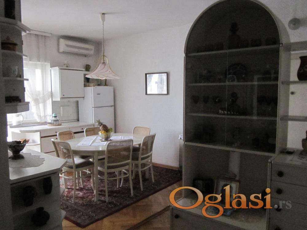 Ovaj stan se nalazi u kvalitetnoj posleratnoj zgadi sa nosećim zdovima debljine 45cm, što obezbeđuje odličnu toplotnu i zvućnu izolaciju, sa visinom plafona od 280cm. U celoj zgradi izvorno centralno grejanje, ovaj stan ga trenutno ne koristi. Podovi su obloženi klasičnim hrastovim parketom. Orjentisan je dvostrano, istok - zapad. Stanu pripada podrum P= 6m2.