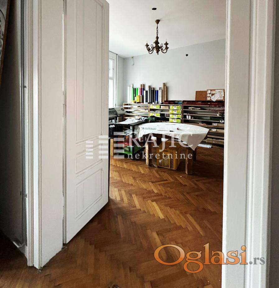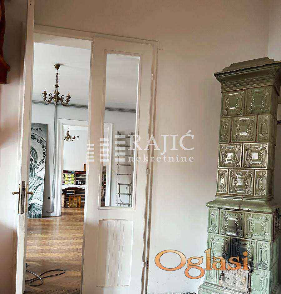 Salonski stan u centru Zemuna. Moguće ga je podeliti na 2 stambene jedinice. Nalazi se na prvom spratu zgrade sa samo tri stana. Postoji i tavanski prostor od 100 m2 . Struktura: ulazni hol, tri sobe, kuhinja, galerija i tri kupatila. Agencijska provizija 2%.