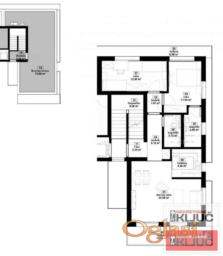 SREMSKA KAMENICA, 89m2 + krovna terasa 73m2, Trosoban sa pdv, Parking, SMART HOME