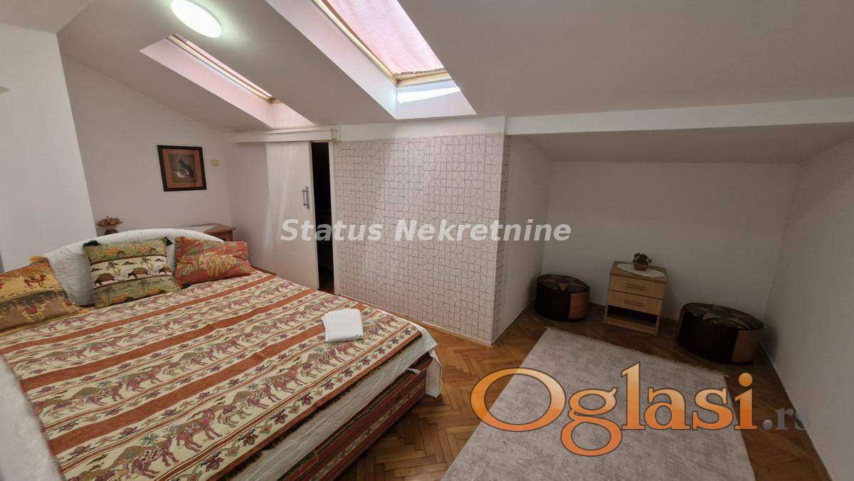 Prodajemo odličan duplex stan, na fenomenalnoj lokaciji. Stan je lep i svetao, funkcionalnog rasporeda. Stan se sastoji od dve etaže i to: na donjoj etaži ima kuhinja sa ostavom, trpezarija, dnevna soba, spavaća soba i terasa (izlaz na terasu iz obe sobe), kupatilo, dok se na gornjoj etaži nalaze dve spavaće sobe, kupatilo i mala kuhinja.