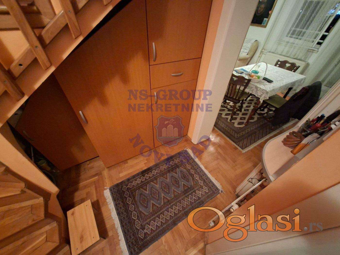 Predstavljamo Vam odličan dupleks stan u ulici Sonje Marinković u Veterniku. Stan se sastoji od 86m2 i u prizemlju poseduje komforan dnevni boravak sa fizički izdvojenom kuhinjom i prirodnom ventilacijom, kupatilo i terasu. Na spratu se nalaze 3 spavaće sobe od koje su dve izuzetno komforne i jedna dečja soba, kao i kupatilo. Pored zgrade se nalazi vrtić, a u neposrednoj blizini se nalazi i škola,brojna autobuska stajališta,crkva,kružni tok koji spaja put prema Futogu,Sajlovu i Novom Sadu. Takodje tu su i brojne prodavnice, saloni nameštaja kao i kafići. Ispred zgrade je napravljen veliki broj parking mesta za stanare. Ovaj stan je dvostrano orijentisan i pruža pravi porodičan komfor. Stan je uknjižen 1/1 na vlasnika bez tereta i zabeležbi tako da je kupovina moguća i putem stambenog kredita. Za više informacija nas pozovite.