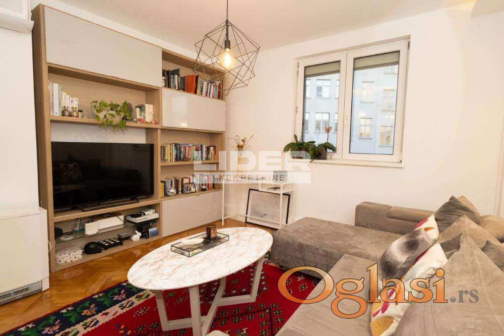 Odlična lokacija u najstrožem centru grada i neposrednoj blizini reke. Stan se nalaziu prelepoj predratnoj zgradi, sa izuzetno lepim ulazom, lepo je renoviran i namešten. Vrlo je svetao, ali i miran jer je orijentisan prema dvorištu. Pogodan je za život i za mesečno, jednodevno izdavanje. Prostorije; predsoblje- hodnik, dnevna soba sa kuhinjom, kupatilo + wc, spavaća soba. agencijska provizija 2%
