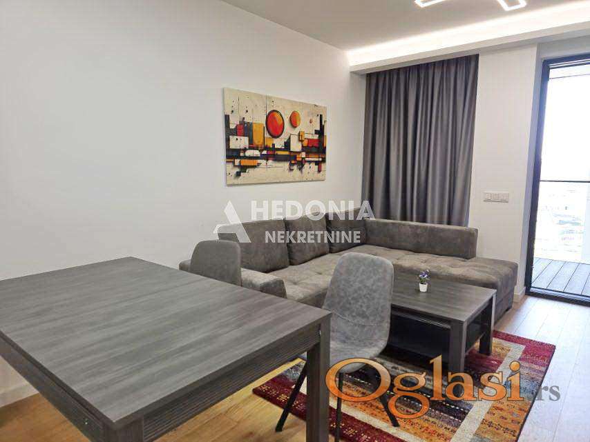 Sakura Park je novo lux naselje koje se nalazi na idealnoj lokaciji na Novom Beogradu, u blizini svih važnih saobraćajnica kojima se brzo i lako povezujete sa ostalim delovima grada. Park je ispunjen drvetom japanske trešnje u okviru koga je i dečije igralište opremljeno brojnim rekvizitima. Za mirnu šetnju pored reke tu je Savski kej, a kada poželite dinamičan šoping, tržni centar Delta City je na korak od vas. Sve što je potrebno za relaksaciju i odmor, nalazi se u Sakura fitnes centru. Smart tehnologija u stanu obuhvata video-nadzor i upravljanje klimatizacijom do najsitnijih detalja, uz mogućnost programiranja grejanja i hlađenja. Ovaj stan je smešten na sedmom spratu u novoj zgradi sa liftom. Po strukturi je dvosoban, nov i luksuzan. Dobro je organizovan, ušuškan i svetao. Sastoji se iz dnevnog boravka sa kuhinjom i trpezarijom, spavaće sobe, kupatila, terase i hodnika. Prodaje se namešten. Mogućnost kupovine i garažnog mesta.