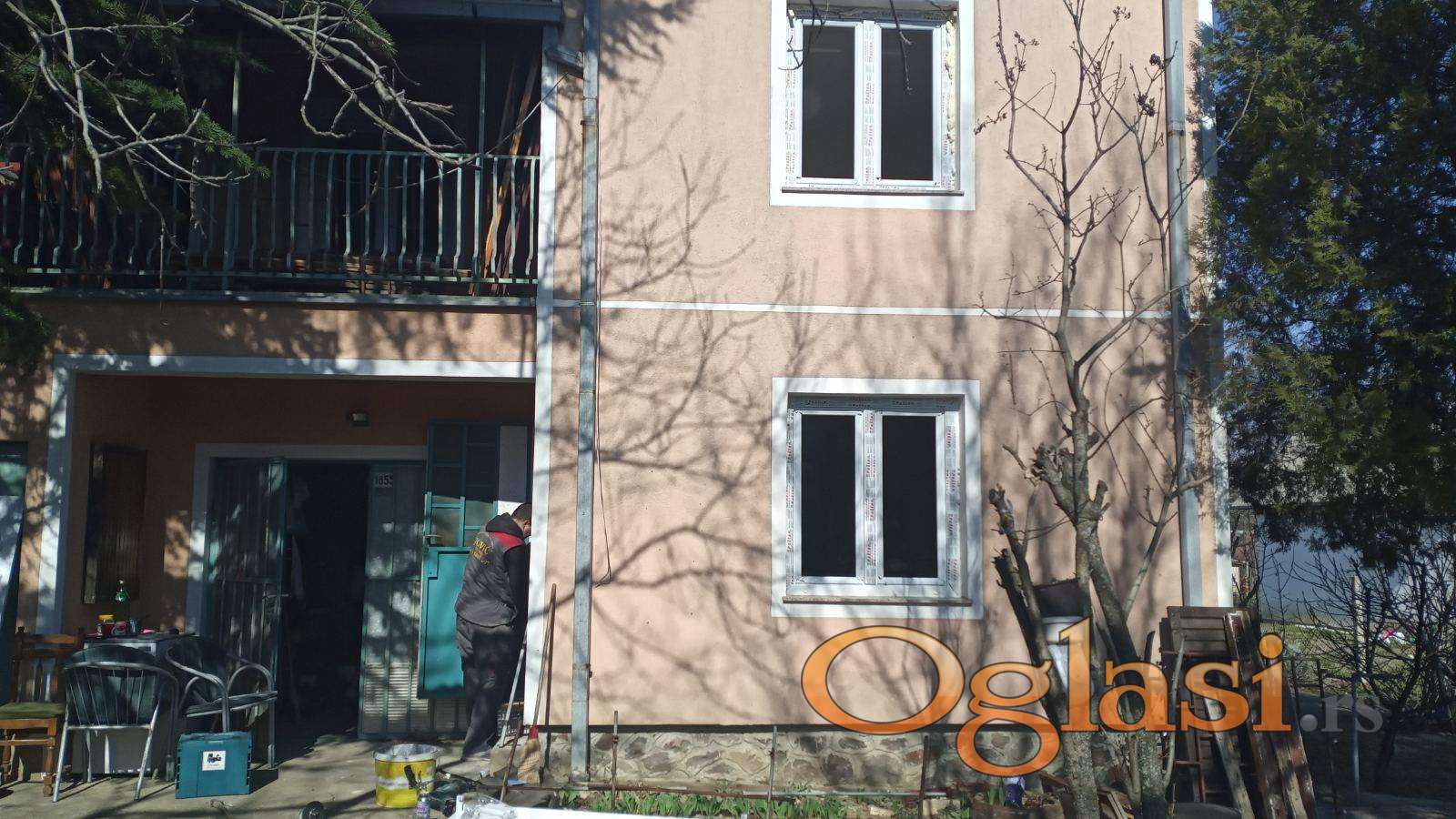 Kuća 60m2 legalizovana, u postupku je etažiranja - spratna, od čvrstog materijala, PVC stolarija, izolacija je urađena, 3 sobe na spratu, dole su kuhinja i kupatilo i garaža sa podrumom.