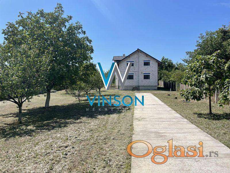 Čortanovci. Vikend kuća površine 151m2, spratnosti prizemlje plus sprat. Izgrađena na lepom, ozelenjenom placu veličine 1.500m2. Prizemlje i potkrovlje čine dva identična četvorosobna stana, svaki sa tri velike spavaće sobe, velikim dnevnim boravcima u sklopu kojih se nalaze kuhinje, centralni ulaz, kupatilo i toalet. Struja, voda, gas. Potpuno ograđen plac. Prilaz do kuće izbetoniran. Bez tereta. Uknjižena. (Vinson nekretnine, Novi Sad, Reg. br. posrednika: 1085)