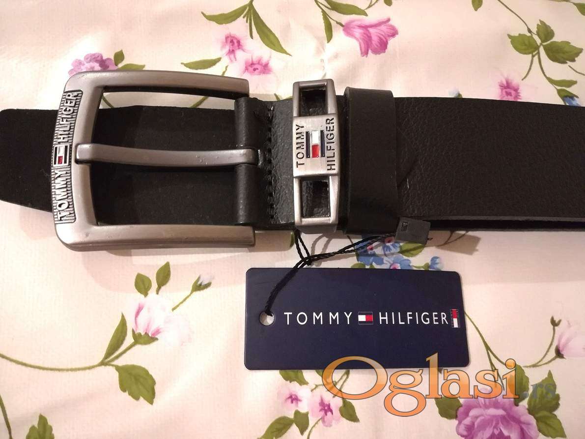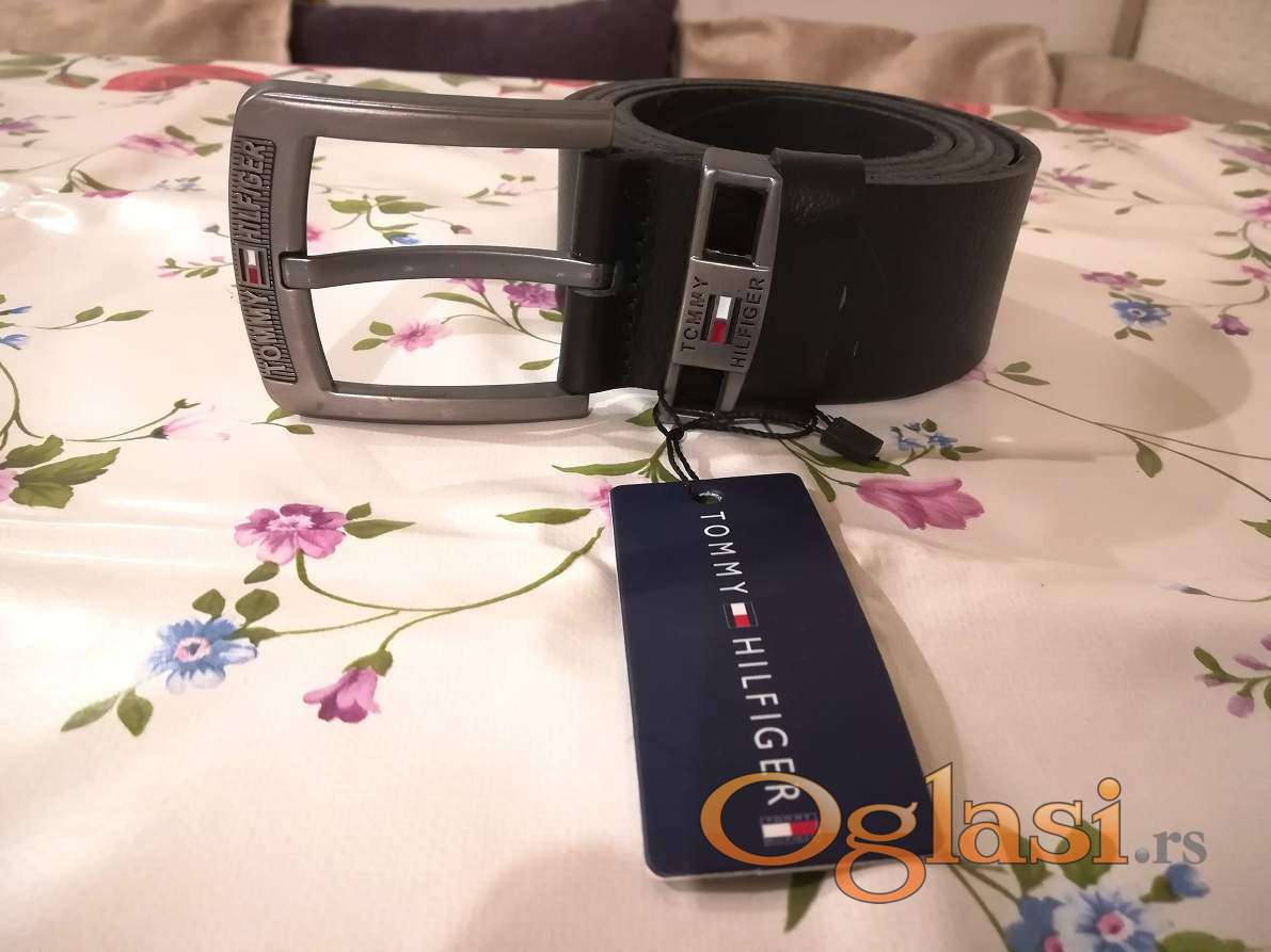 Novi muski kozni markirani kais Tommy Hilfiger sa etiketom.