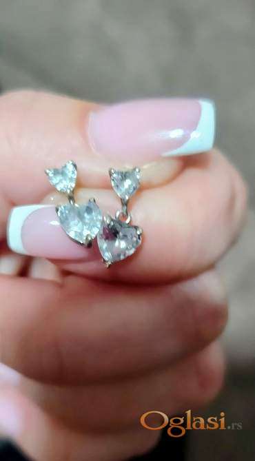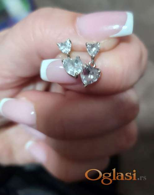 Viseće minđuše od srebra. Srce. Kačenje na šraf.Nove.