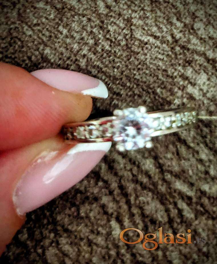 Bvlgari prsten , nikad nije nošen, veličina 18, prelep, sa cirkonima sitnim i jednim velikim belim u sredini. NOV