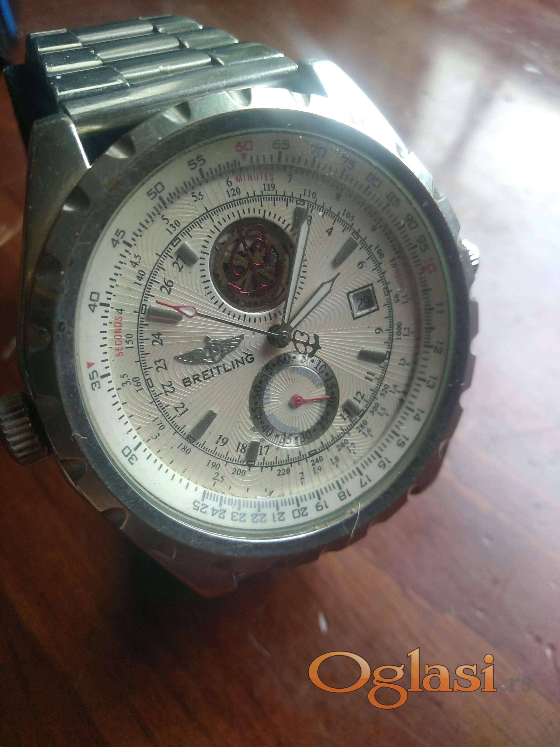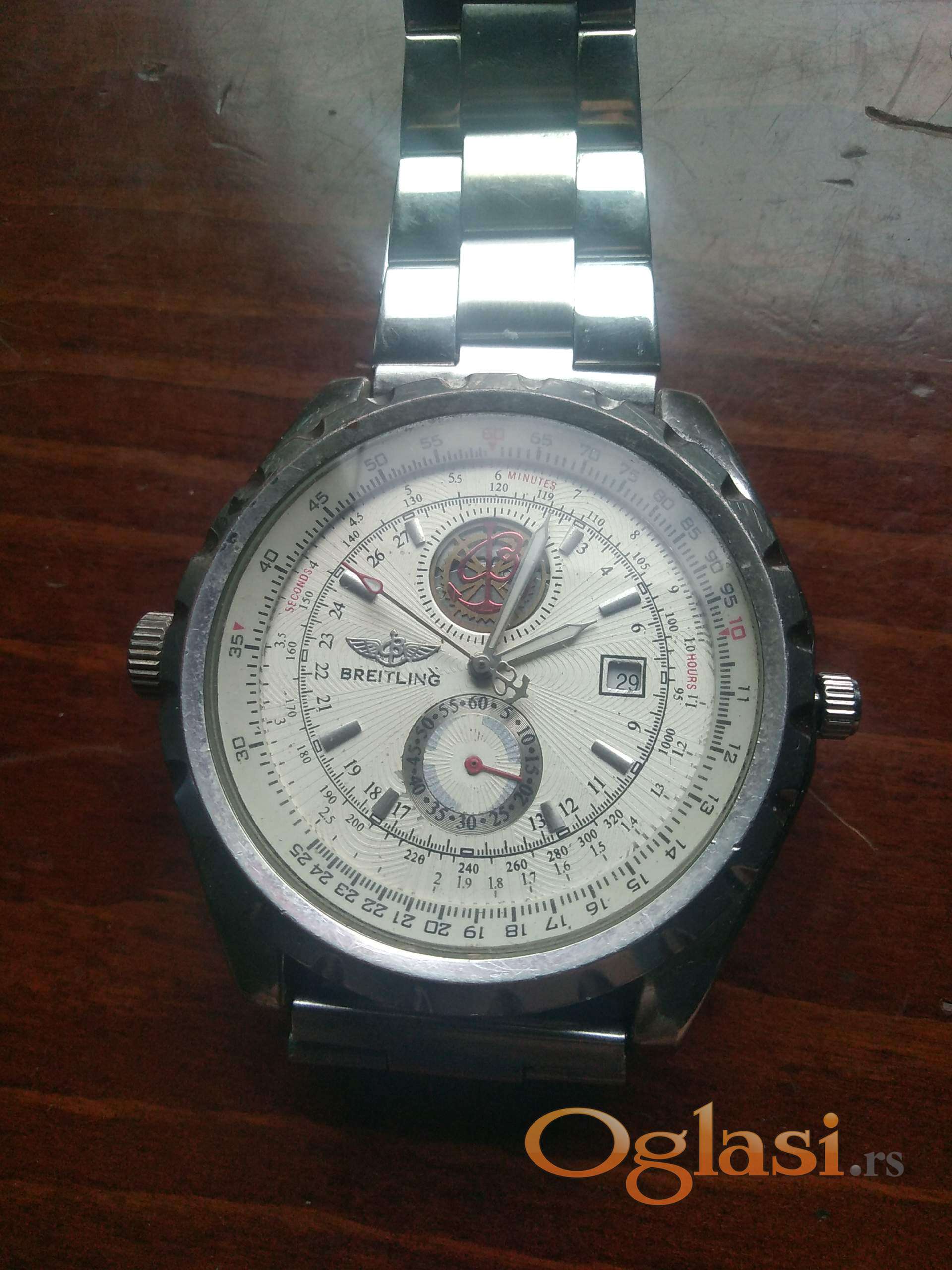 ručni muški sat automatik breitling - automatic - bentley. sat je ispravan i radi . osim što je automatic može se i navijati ručno . sekundarica mala dole mu radi isto kao i datum . krunica na navijanju nije originalna . veličina kućišta je 49 mm . troškove dostave snosi kupac.