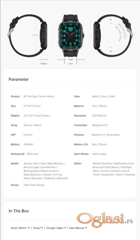 Sat je otporan na blaze udarce i vodootporan po standardu IP65 kao i pametni telefoni na kapljice vode, kuciste i kajs su od specijalne polimer plastike otpotne visoke i niske temperature i dolazi u lepoj kutiji pa je idealan za poklon.