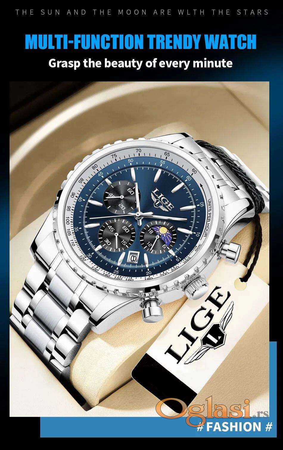 Muški Lige luksuzni kvarcni elegantni masivni sat.