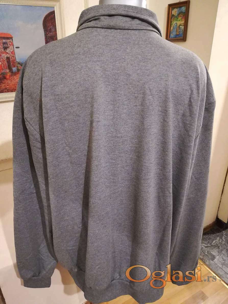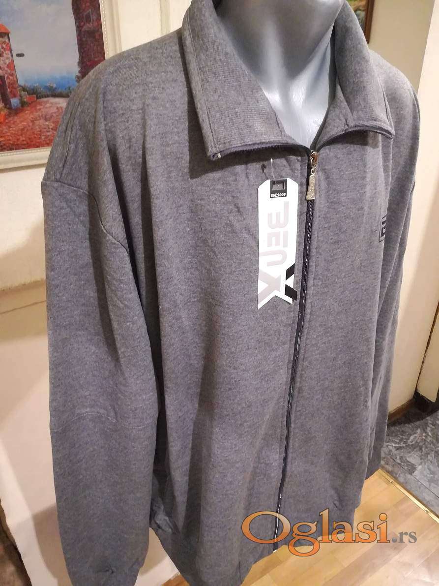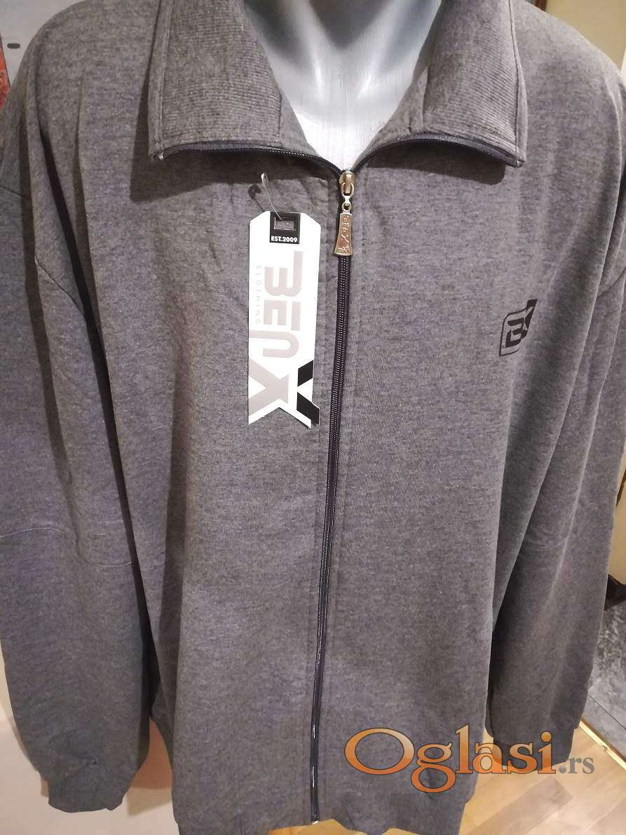 Novi muski pamucni duks sa kragnom u velikom broju Benx 5XL Sivi. Novopazarski. Odlican muski duks za muskarce svih uzrasta. Uradjen od prijatnog i vrlo kvalitetnog materijala. Lagan, komotan, vrlo lepog dezena, lako se kombinuje sa bilo kojim komadom garderobe. Izuzetan muski duks koji ima dva dzepa sa ziperom na bokovima, kragnu i kopca se na rajferslus. Super ide na farmerke, pantalone i trenerke. Mogu ga nositi i punije osobe sa preko 120 kg. Pamucna muska dukserica sa kragnom Benx je nova sa etiketom.