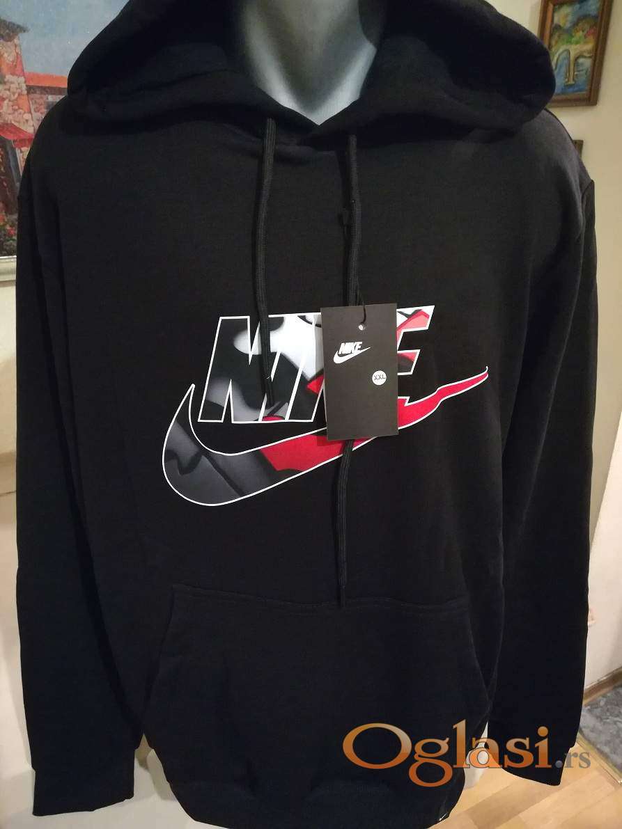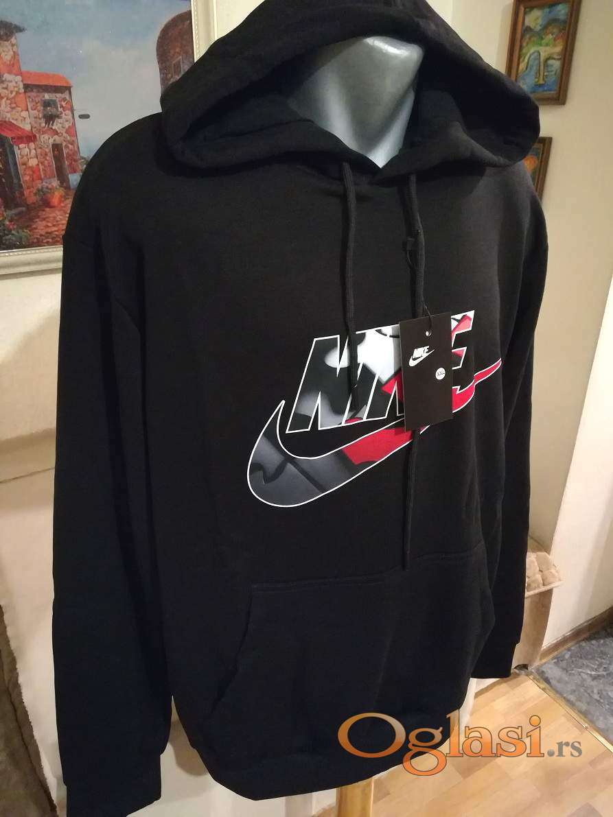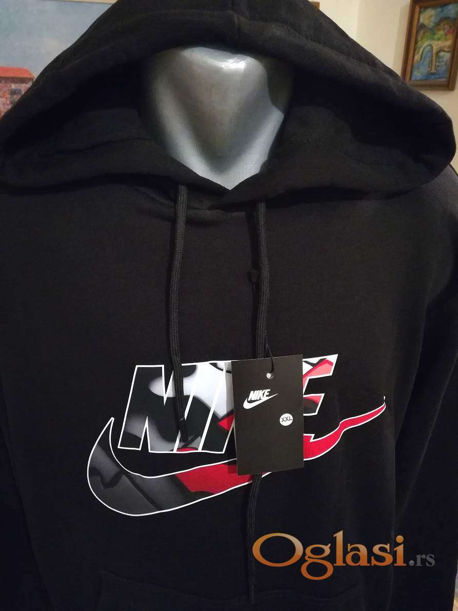 Super ide na farmerke, pantalone i trenerke. Mogu ga nositi i punije osobe sa preko 100 kg. Muska pamucna dukserica sa kapuljacom Nike je nova sa etiketom.