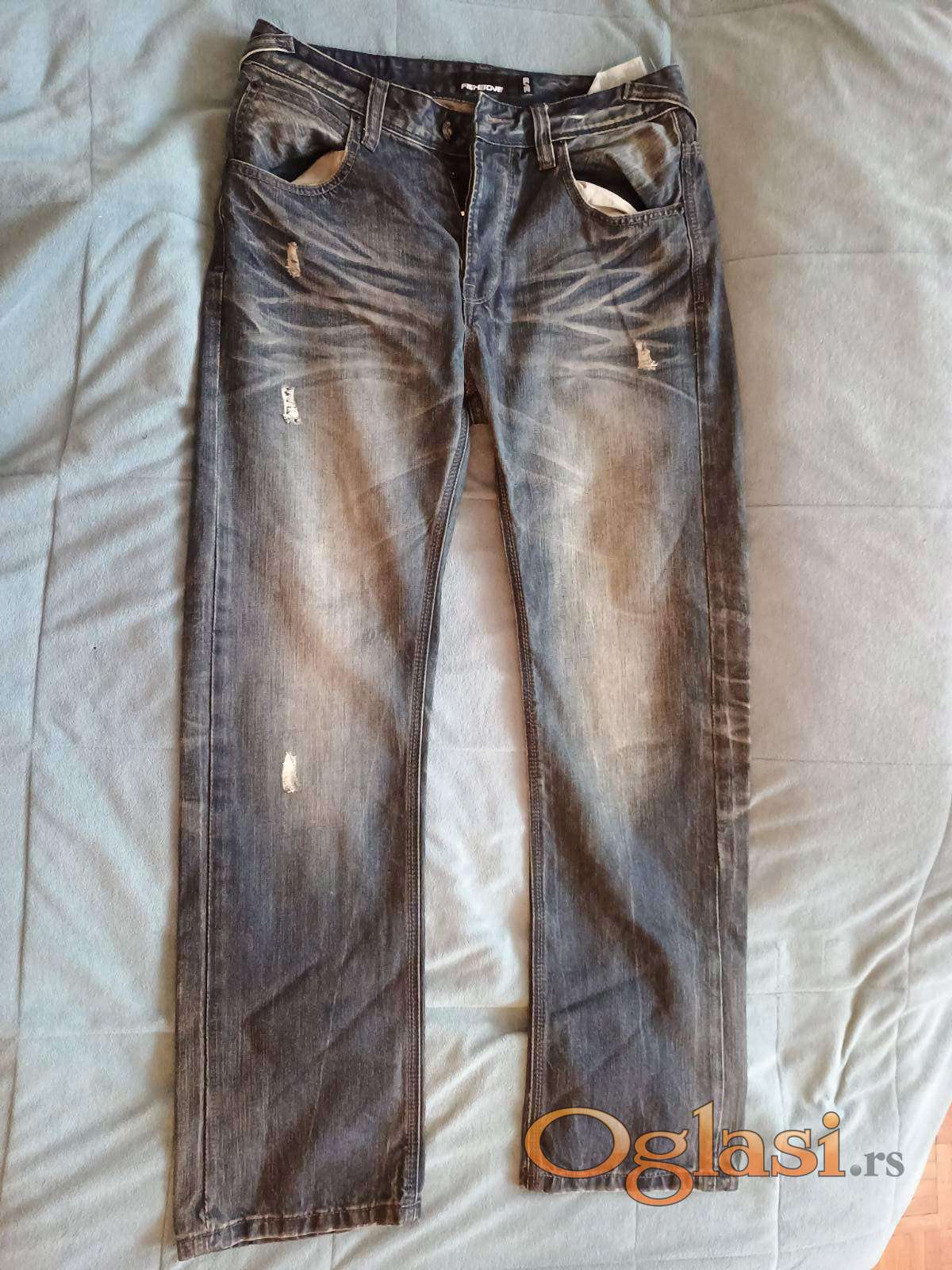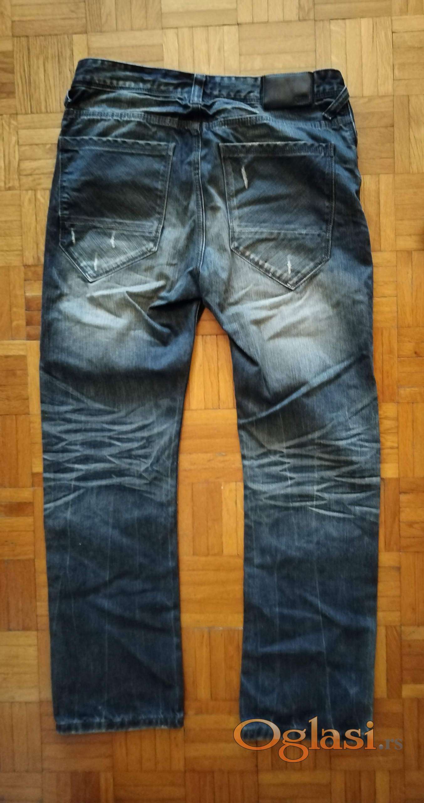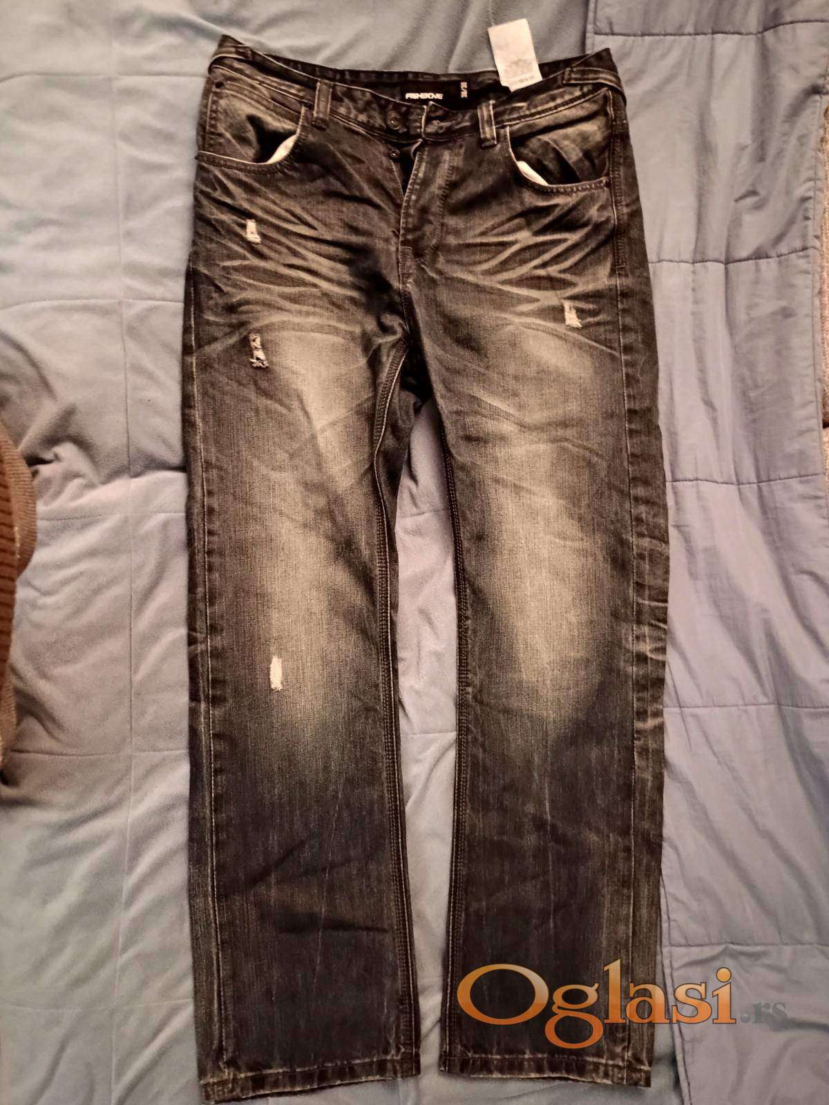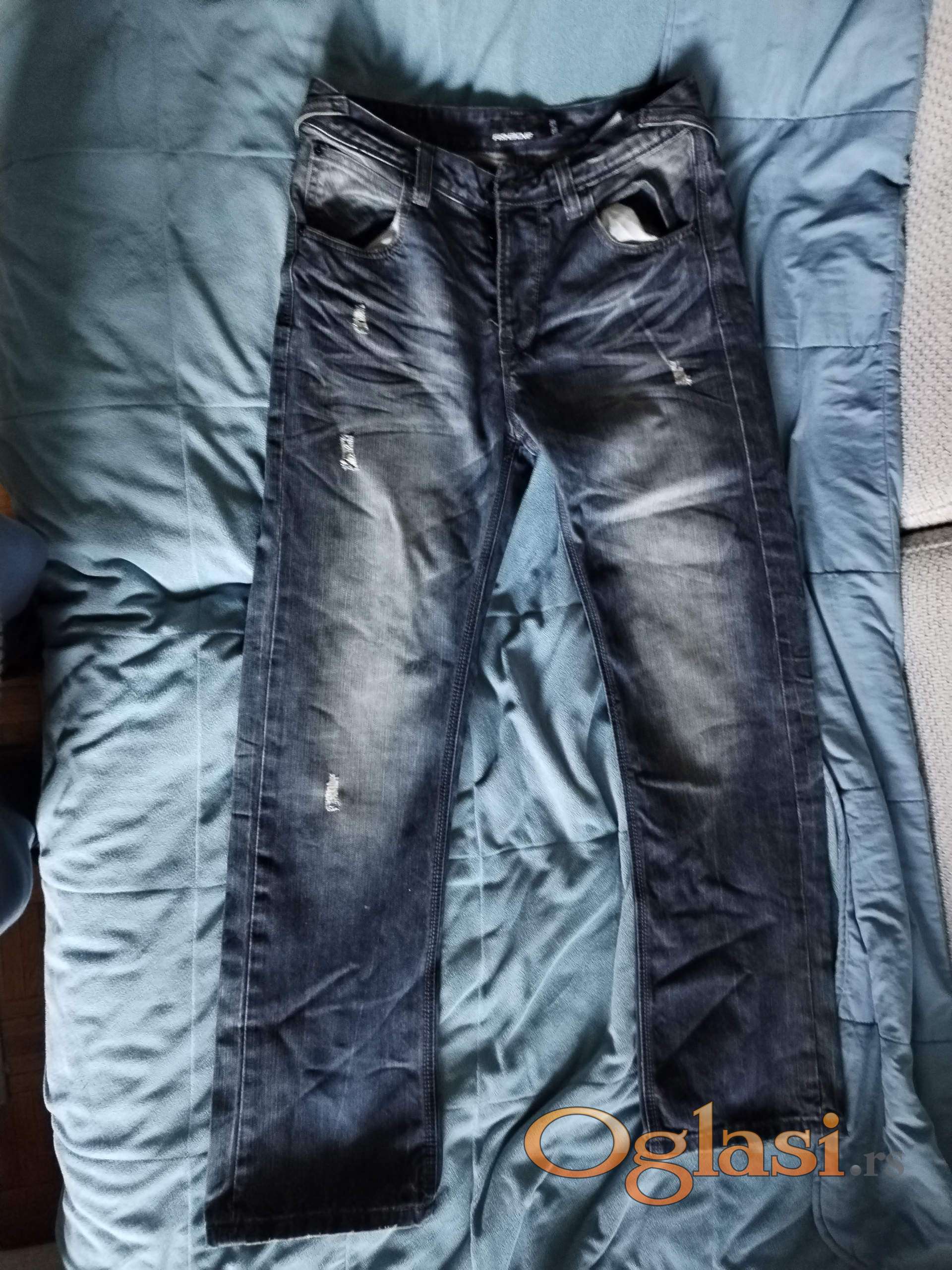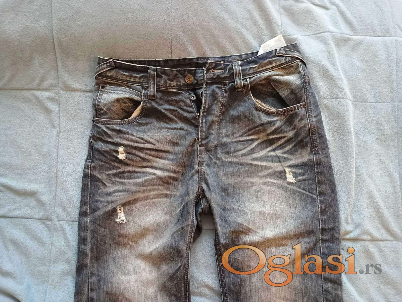 Farmerke tamno-sivo-plave, izbledele i iscepane