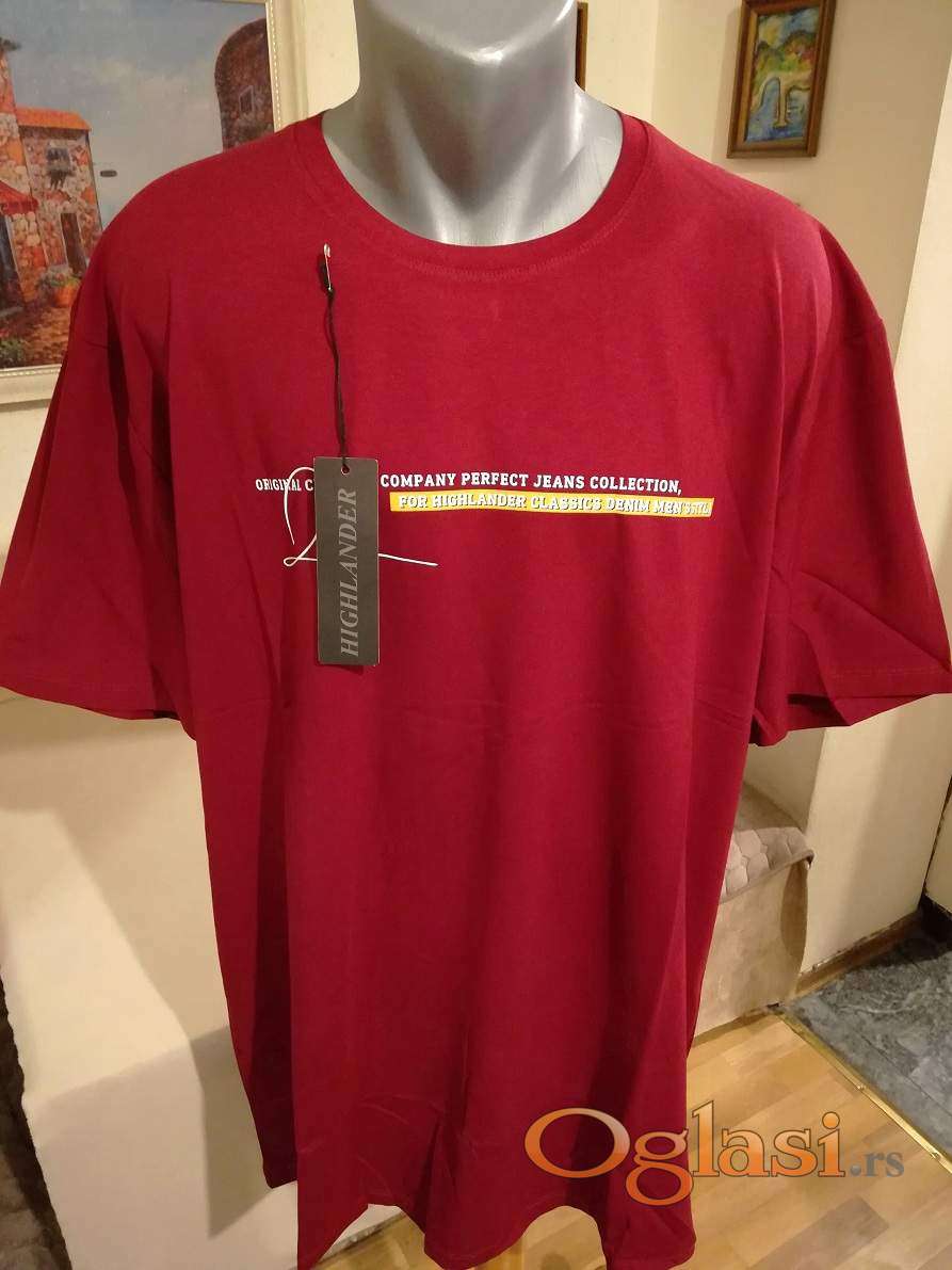 Nova muska pamucna markirana majica Highlander u velikom broju 6XL. Turska. Odlicna muska pamucna majica za muskarce svih uzrasta. Uradjena od vrlo prijatnog i kvalitetnog pamuka. Vrlo lepog dezena, lako se kombinuje sa bilo kojim komadom garderobe. Super ide na farmerke, trenerke, bermude i pantalone. Odlicna muska majica za sve prilike, idealna za posebne prilike i svecanosti. Muska pamucna markirana majica Highlander je nova sa etiketom.