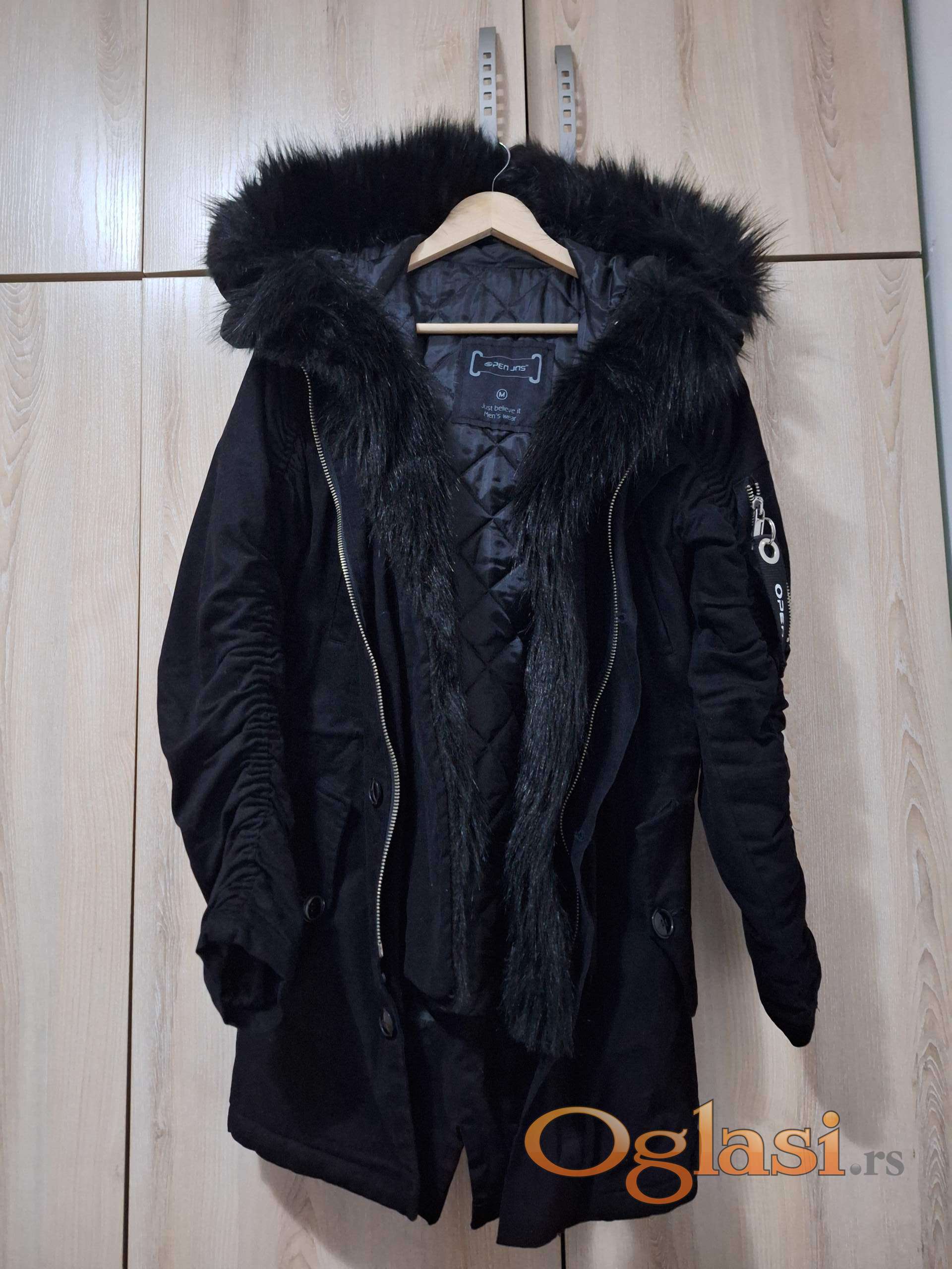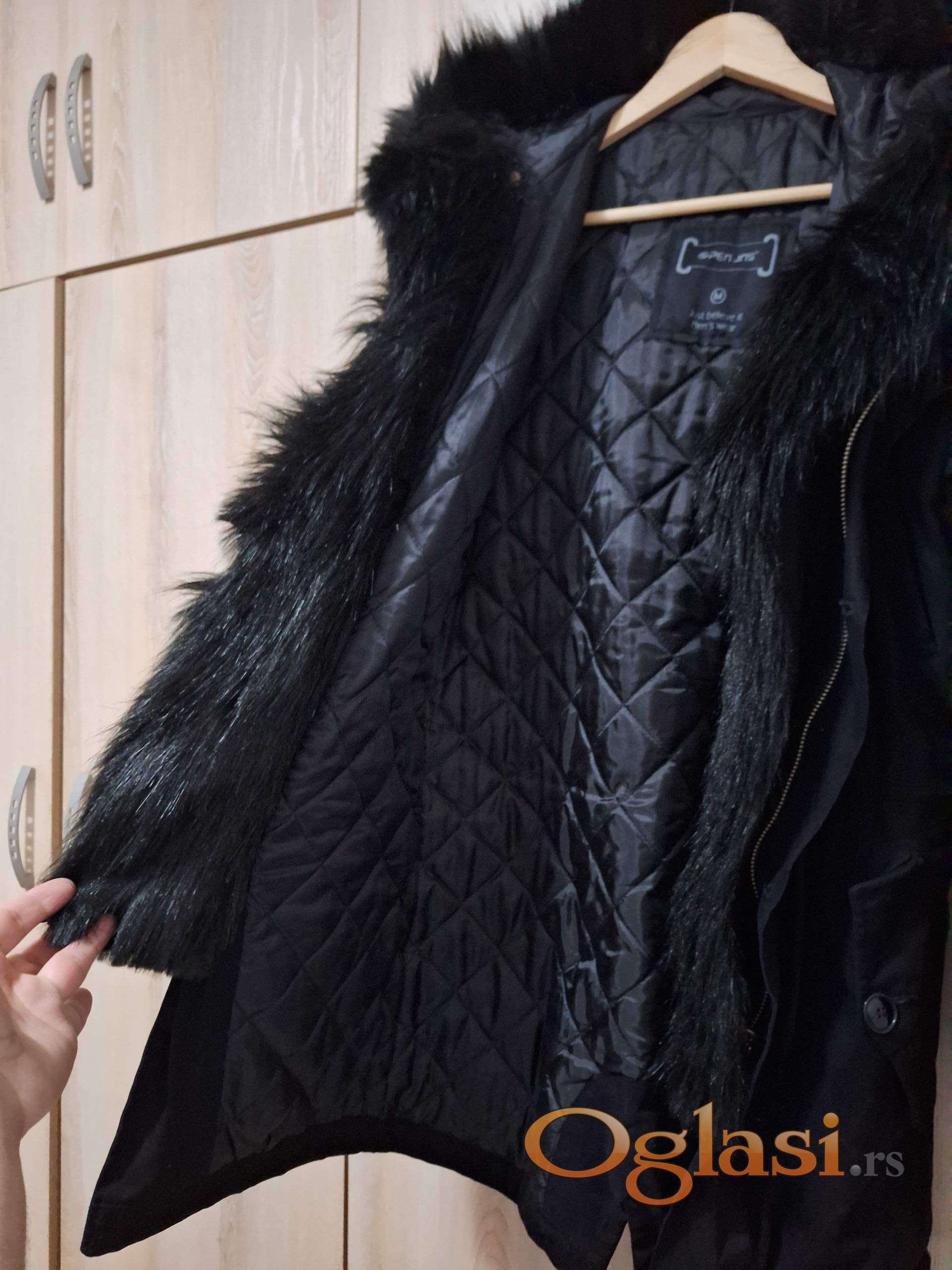 Prodajem crnu dugačku jaknu sa crnim veštačkim krznom na kapuljači i oko rajsferšlusa. Jakna je kupljena online u veličini M. S obzirom da veličina nije odgovarajuća, jakna je nošena samo nekoliko puta otkopčana. Tako da je jakna praktično nova. Materijalni sastav 98% pamuk i 2% poliester. I spoljašnjost i unutrašnjost kao i krzno su jako prijatni na dodir. Veličina je M. Cena 5000 din.