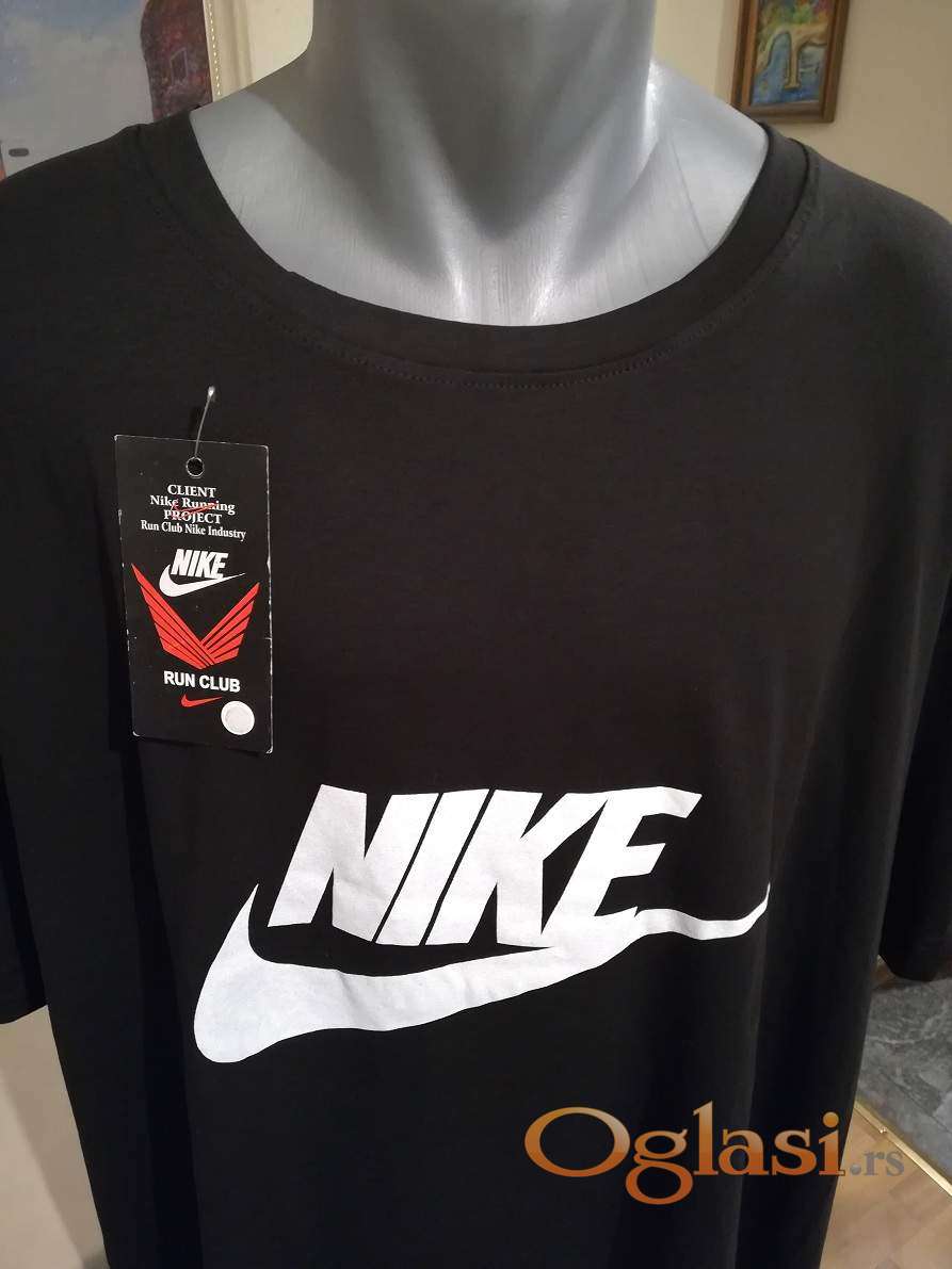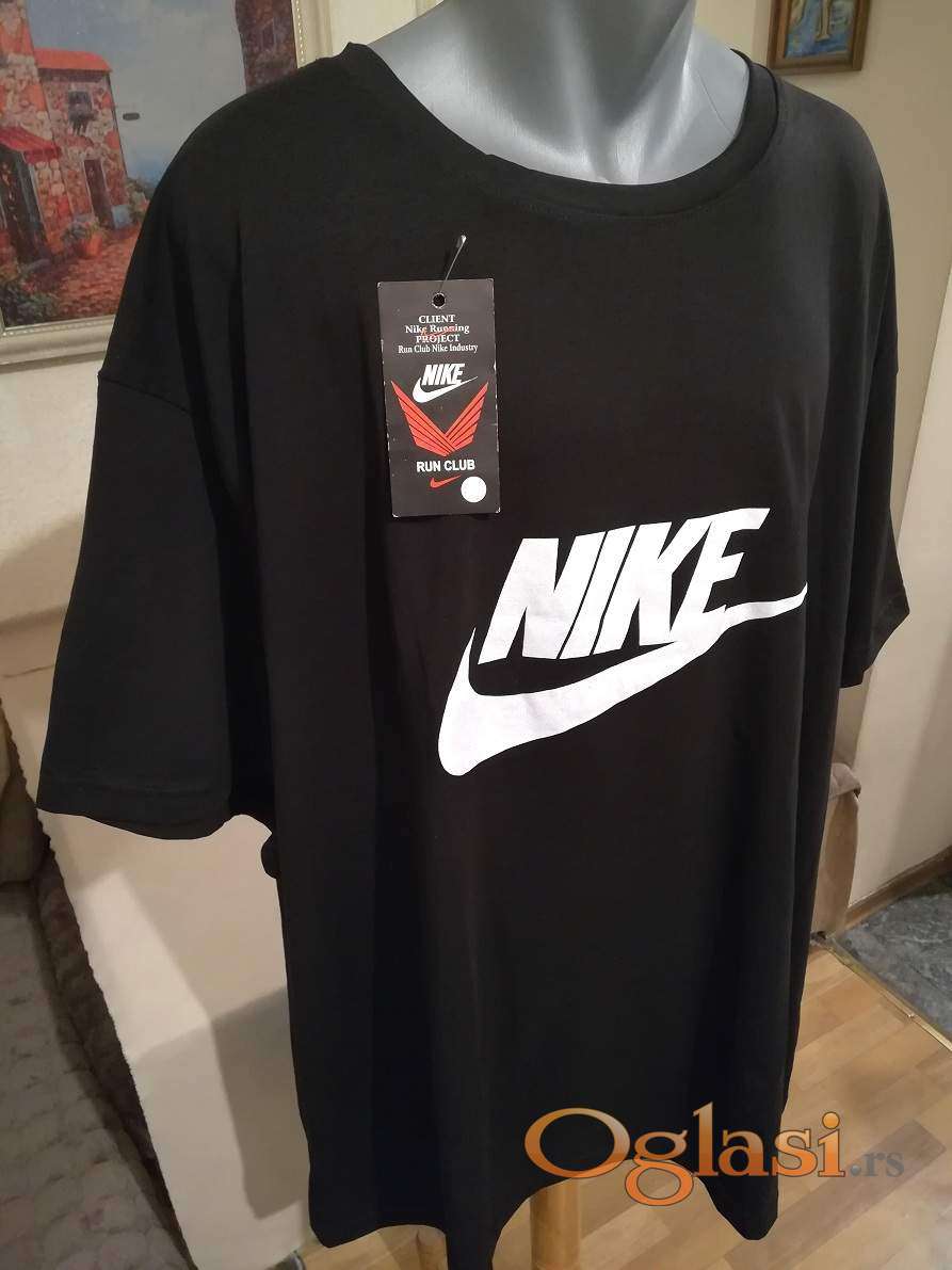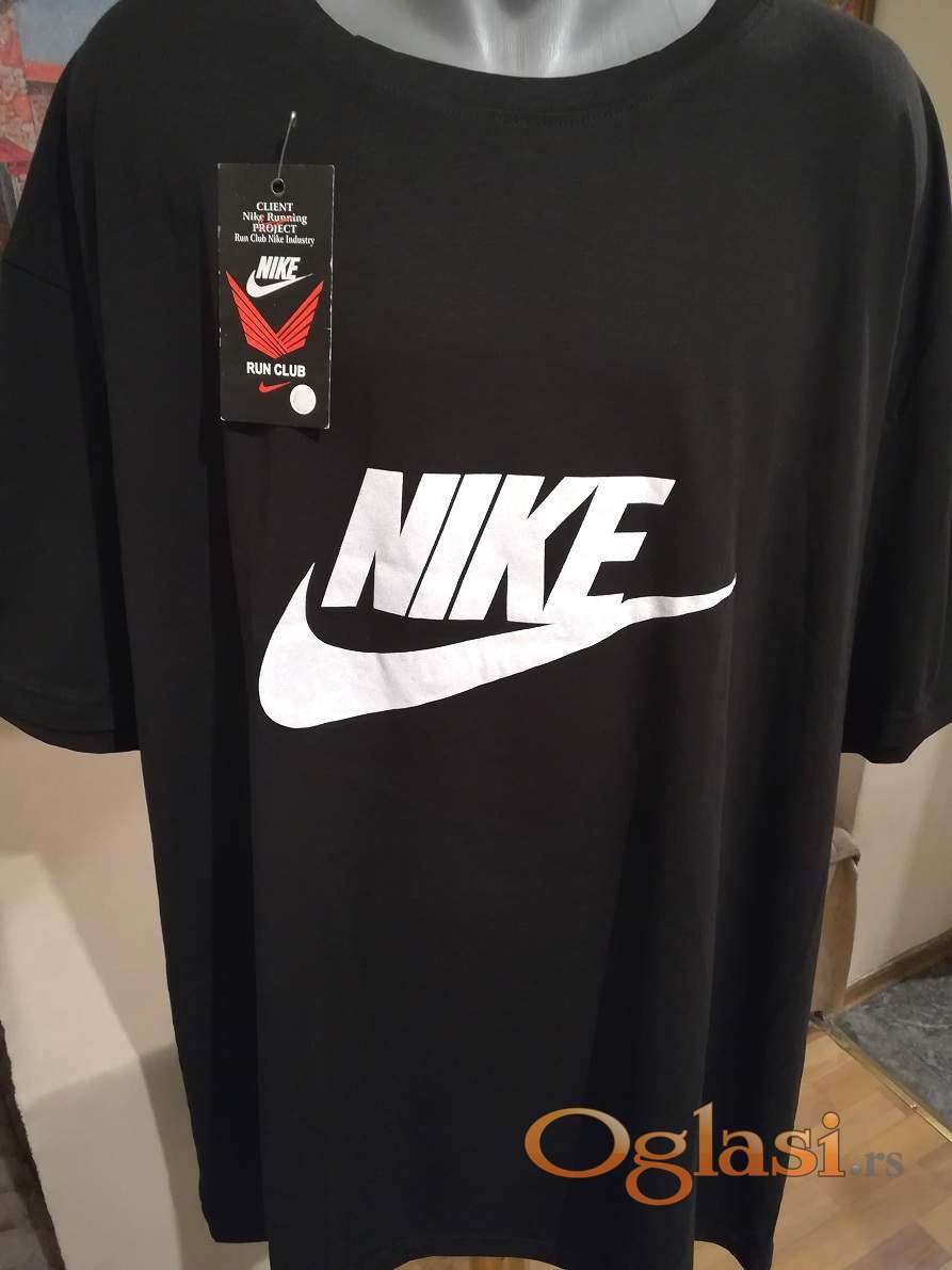 Nova muska pamucna majica Nike u velikom broju 7XL Crna. Turska. Vrlo dobra muska majica za muskarce svih uzrasta. Uradjena od vrlo prijatnog i kvalitetnog pamuka. Vrlo lepog dezena, lako se kombinuje sa bilo kojim komadom garderobe. Super ide na farmerke, trenerke, bermude i pantalone. Odlicna muska pamucna majica za sve prilike. Majica je vrlo veliki model tako da je mogu nisiti i krupniji muskarci od preko 130 kg. Muska pamucna majica Nike u velikom broju 7XL je nova sa etiketom.