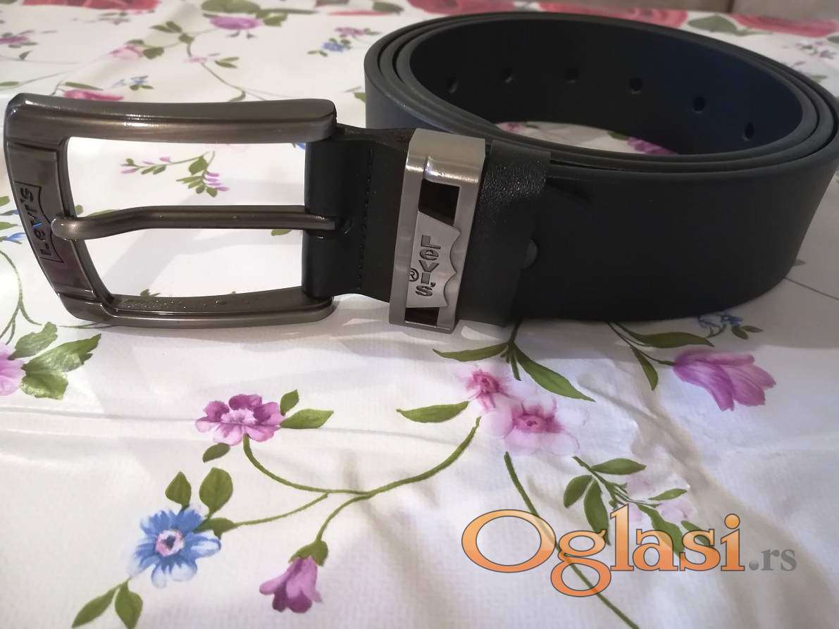 Novi muski kozni markirani kais Levis sa crnom kozom.