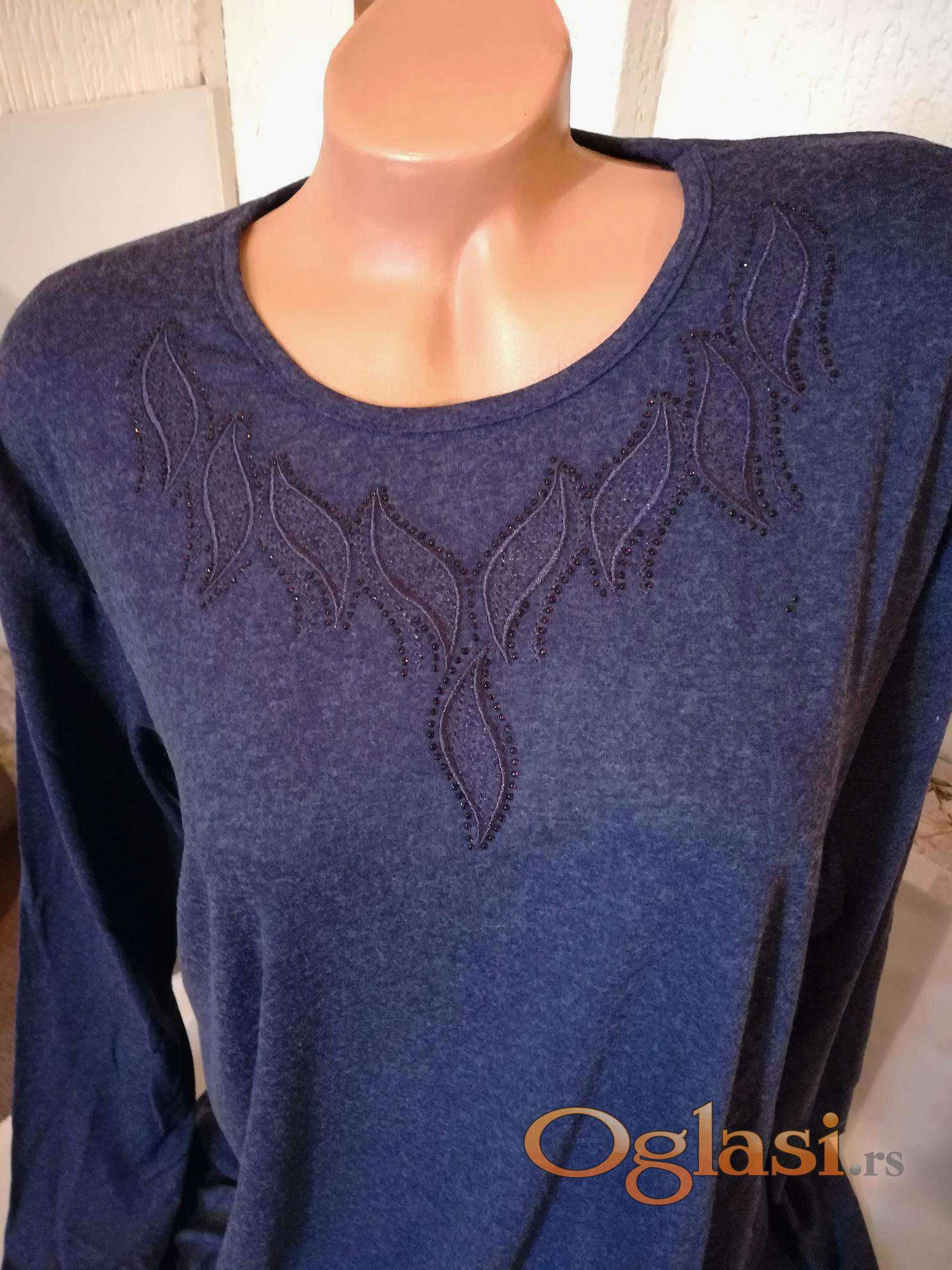 Nova zenska tunika sa ukrasima za punije dame Mardi. Turska. Odlicna zenska tunika za punije dame i devojke. Izradjena od kvalitetnog i prirodnog materijala, moze se nositi u svim prilikama. Prijatna za nosenje, super ide na pantalone, helanke i farmerke. Tunika na sebi ima ukrase u vidu bisera na grudima. Tunika je uradjena od rastegljivog i elasticnog materijala. Dobra zenska tunika za svaki dan, idealna za posebne i svecane prilike.