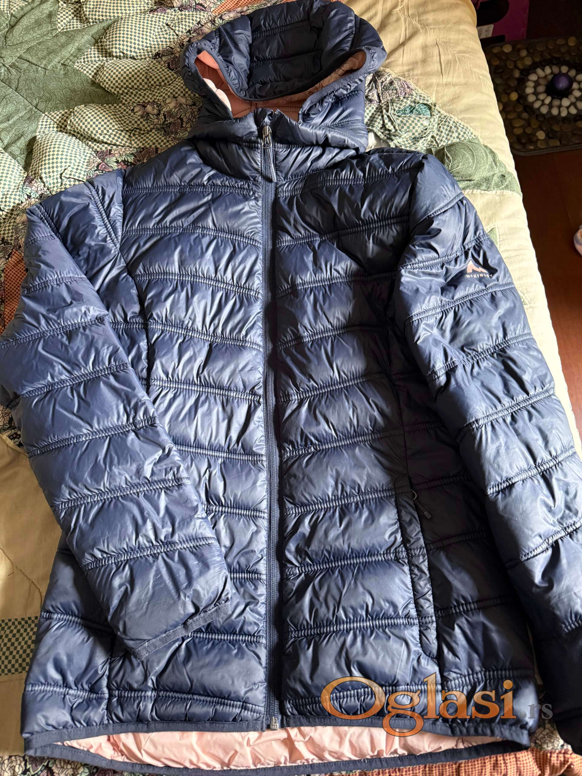 Ženska jakna McKinley broj 38, teget. Ramena 40 cm, dužina 70 cm, rukav, meren od pazuha 52. Obučena jedanput.