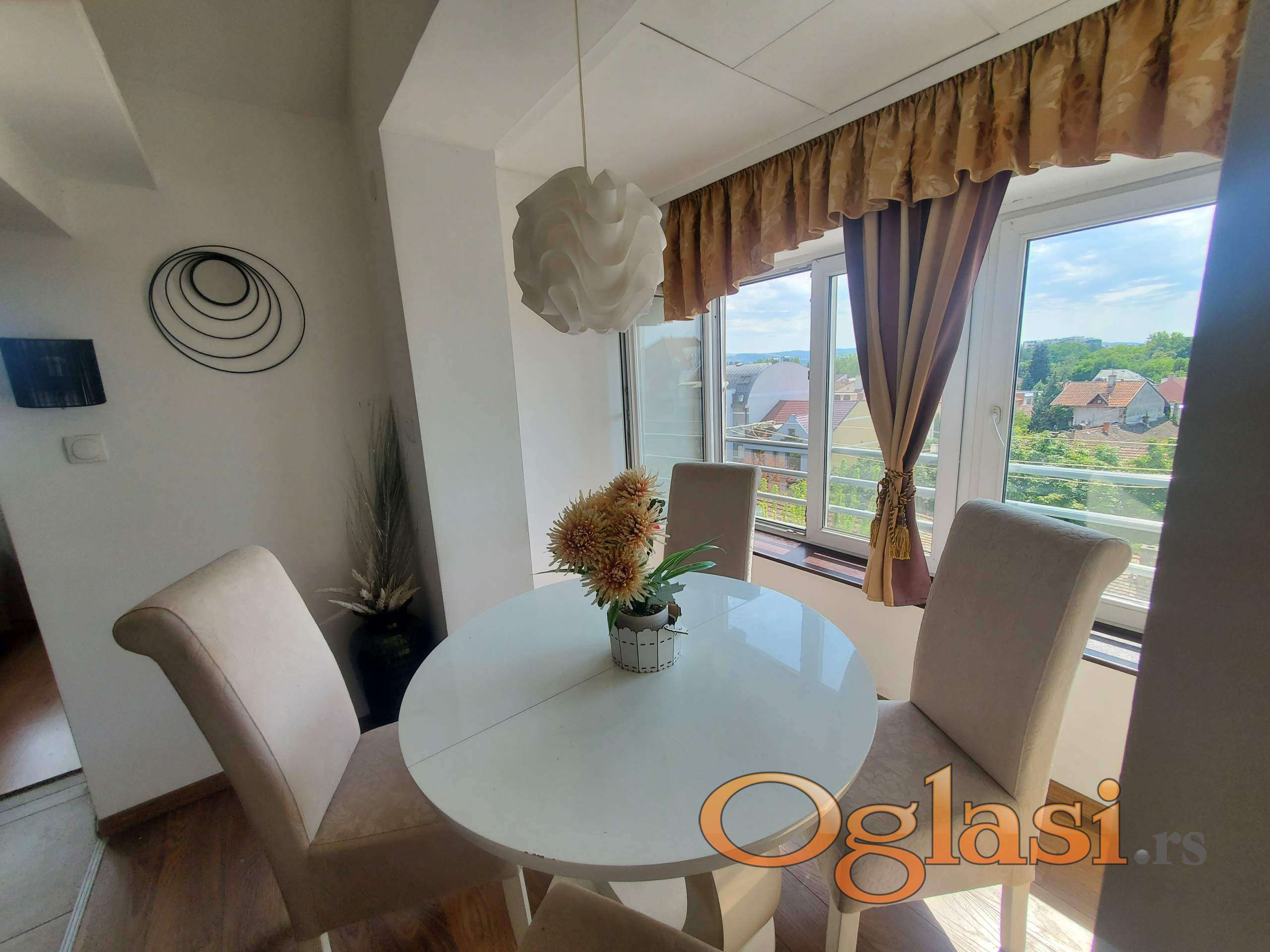 Na slici gde se nalaze trpezarijski sto i stolice, pogled se prostire u pravcu Futoškog parka.