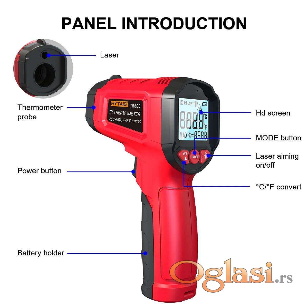 Novi daljinski digitalni IR termometar HYTAIS TS600 meri do 600C.