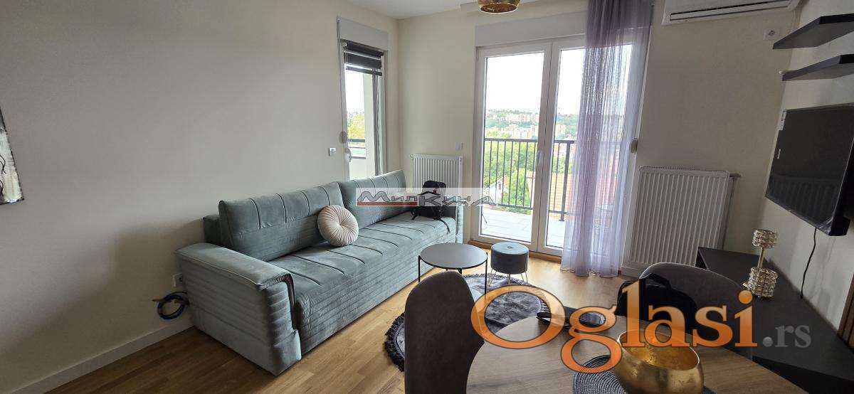 Mirijevo,Aleksandra Bugarskog ulica,2.0,47kvm,NOV nameštaj,EG -kalorimetri (grejanje po potrošnji-info stan 800din),održavanje zgrade 1200din, klima, dnevna+spavaća soba+2 terase, mašina za sudove,mašina za sušenje, parking mesto uz doplatu (nije obavezno), NOVOGRADNJA, 450e+DEP+ag.provizija 50% (br.reg.220) 061/7000368